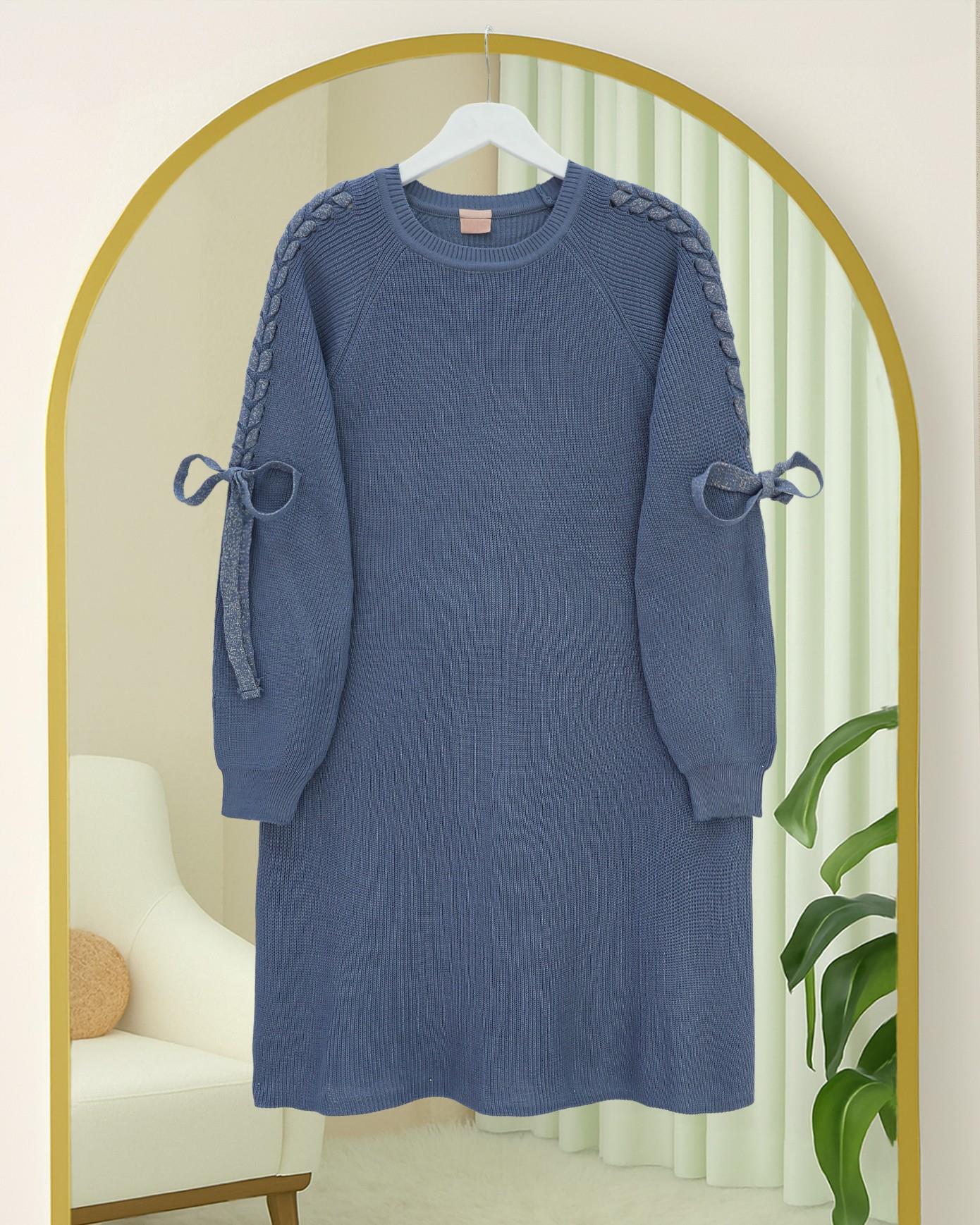 Omuzu Saç Örgülü Salaş Triko Tunik - Ürün Açıklaması