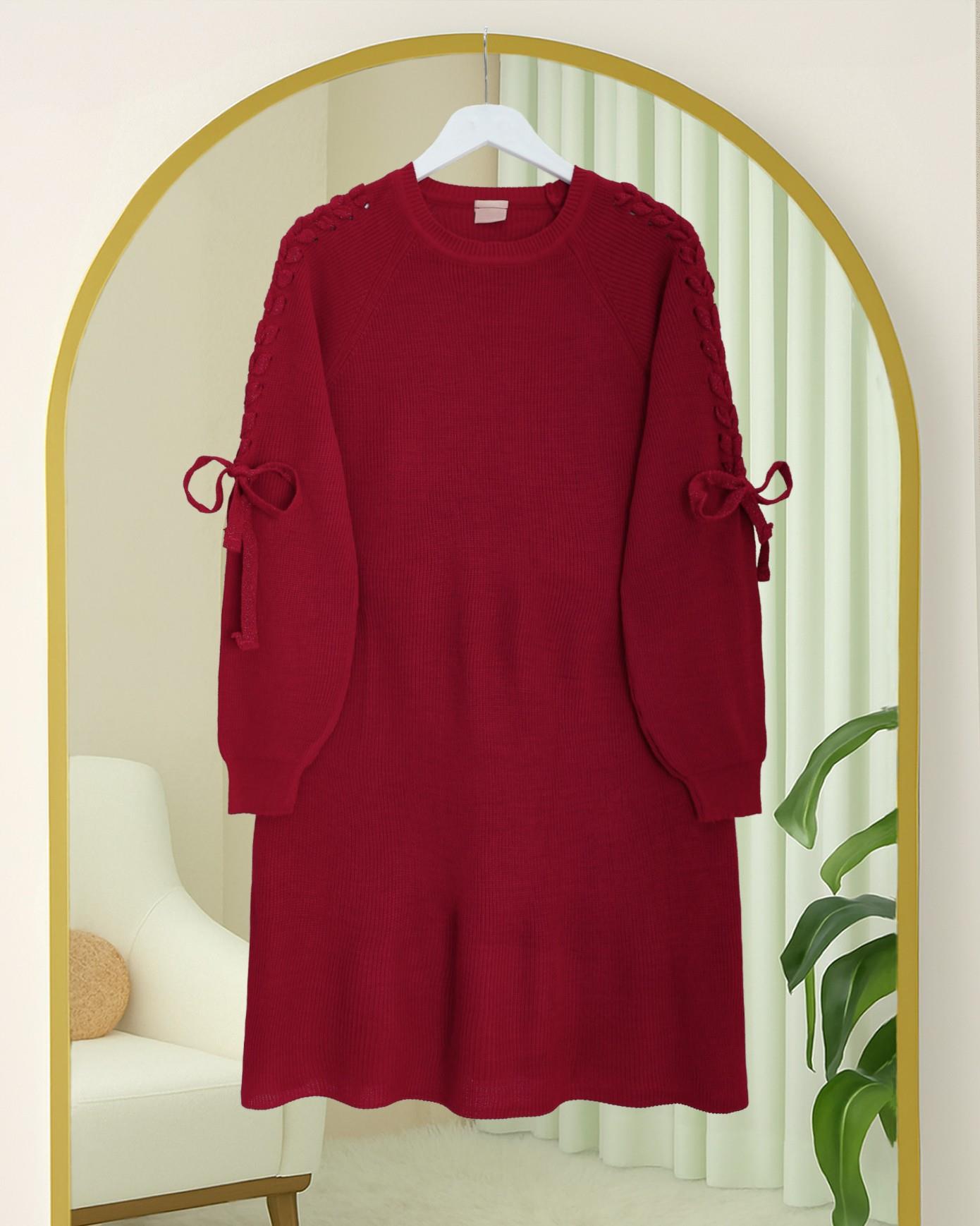 Omuzu Saç Örgülü Salaş Triko Tunik -Kırmızı (295-1281-R33)