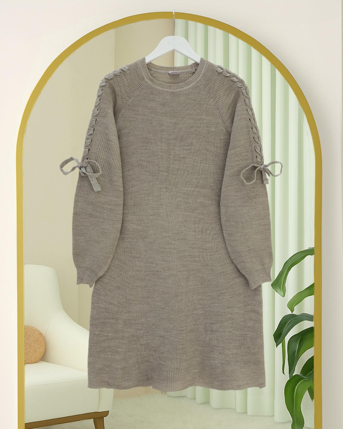 Omuzu Saç Örgülü Salaş Triko Tunik -Toprak (295-1281-R55)