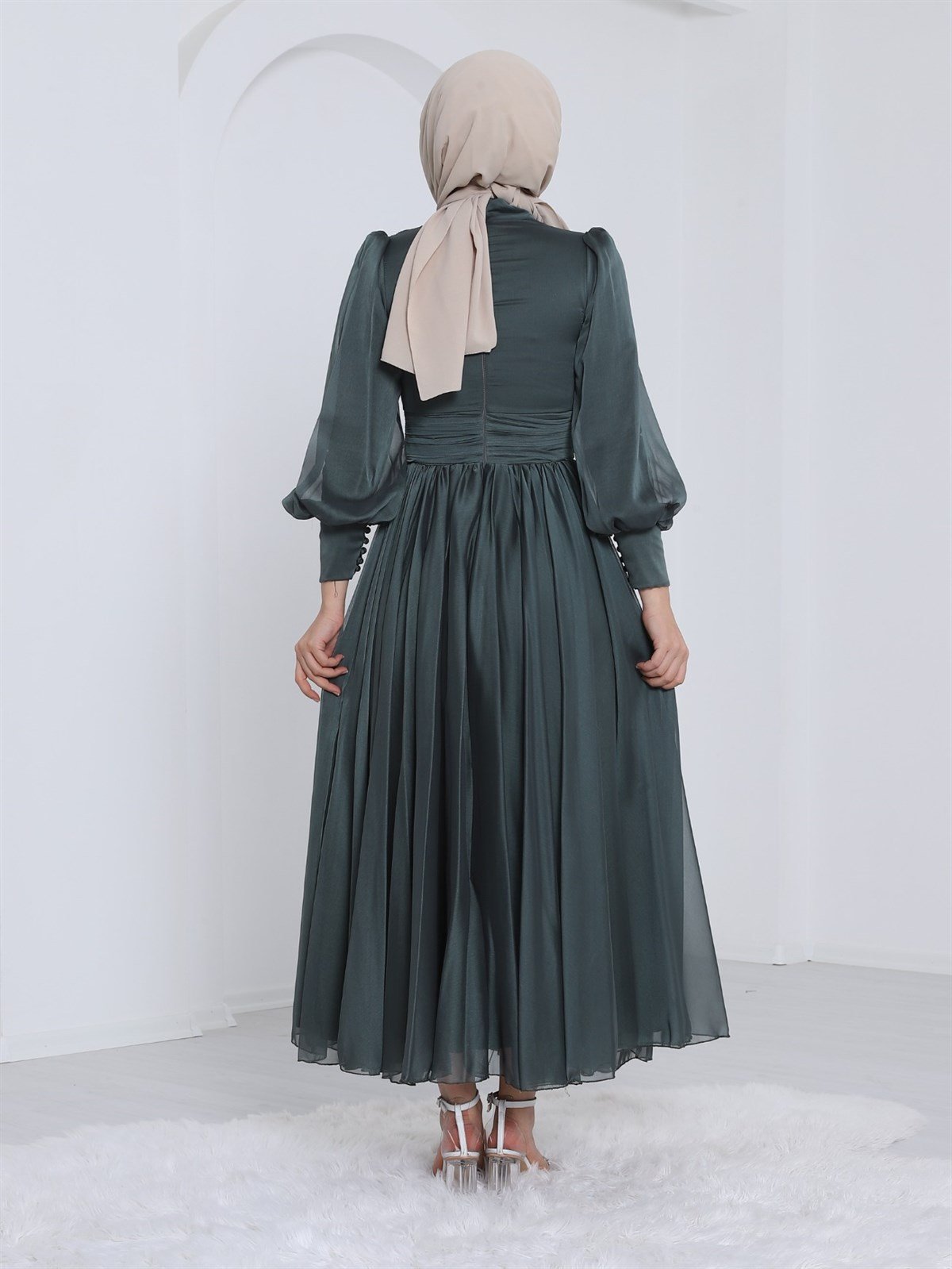Önü drape detaylı, kolu düğmeli, göğüs destekli, astarlı, arkası yarım fermuarlı abiye modelimiz yeni sezonun en rağbet gören parçalarındandır.Kampanyalı ve indirimli fiyatıyla kolaylıkla satın alabilir dört mevsim boyunca özel ve davet günlerinizde rahatlıkla kullanabilirsiniz.Kullanıcıya ve bölgesine göre bu ürün tesettür abiye, rahat abiye, şifon abiye olarak da adlandırılabilir.Giydiğiniz bedeni ölçü tablosuna bakarak belirleyebilir size en uygun bedeni sepetinize ekleyerek en iyi fiyata sipariş edebilirsiniz.Not: Ürünün renginde konsept çekimlerinden dolayı ton farklılığı olabilir.Yıkama: 30 derecede yıkayınız.