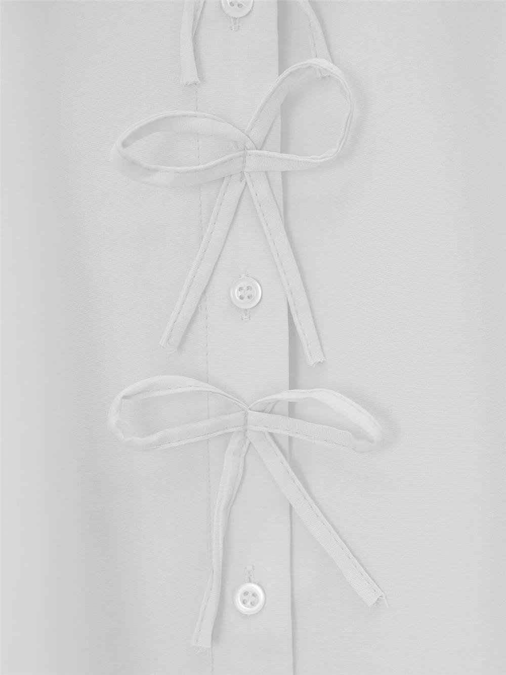 Önü Fiyonk Detaylı Bebe Yaka Poplin Gömlek -Beyaz (120-1596-R02)