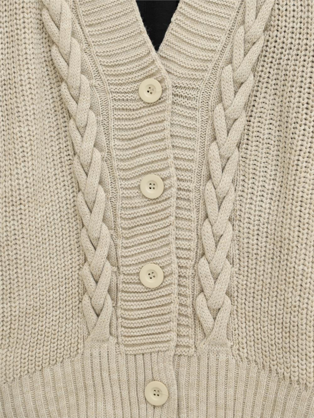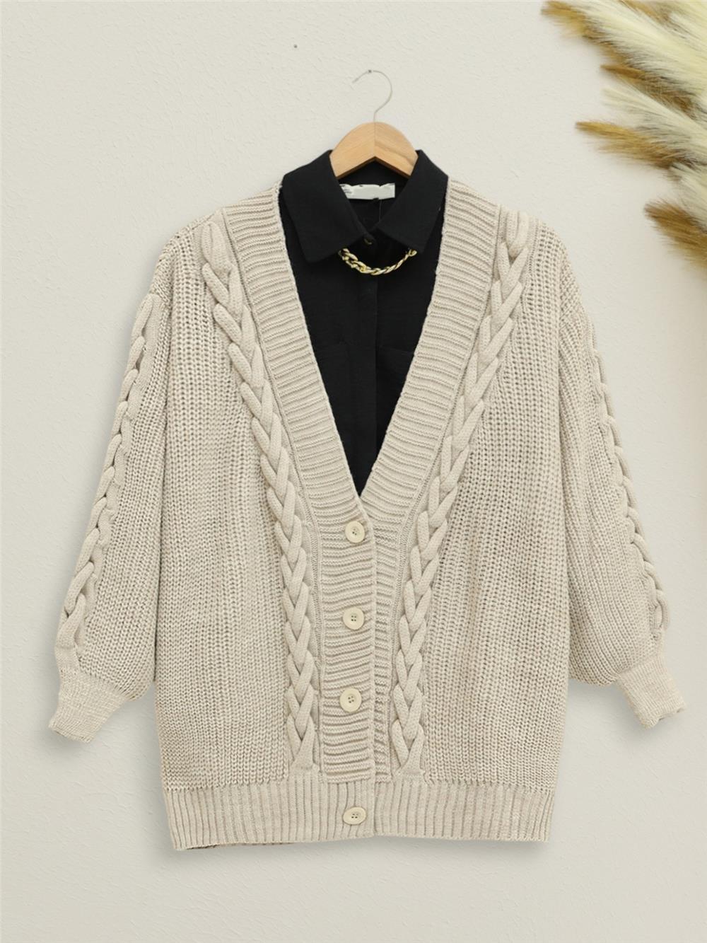 Önden düğmeli, saç örgü desenli, kol manşeti lastikli triko hırka modelimiz yeni sezonun en çok sevilen modelleri arasında yer almaktadır.
