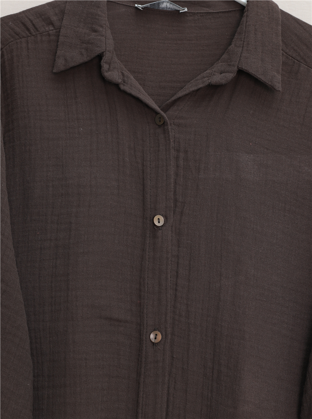 Rahat kalıbı sayesinde vücuda nazikçe oturur, sıkma yapmadan doğal bir görünüm sunar. “Oval kesim müslin gömlek”, “düğmeli müslin gömlek”, “rahat kadın gömlek modelleri” gibi adlandırılabilir.