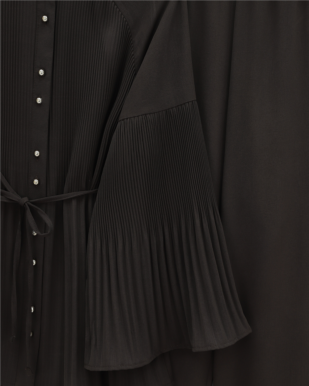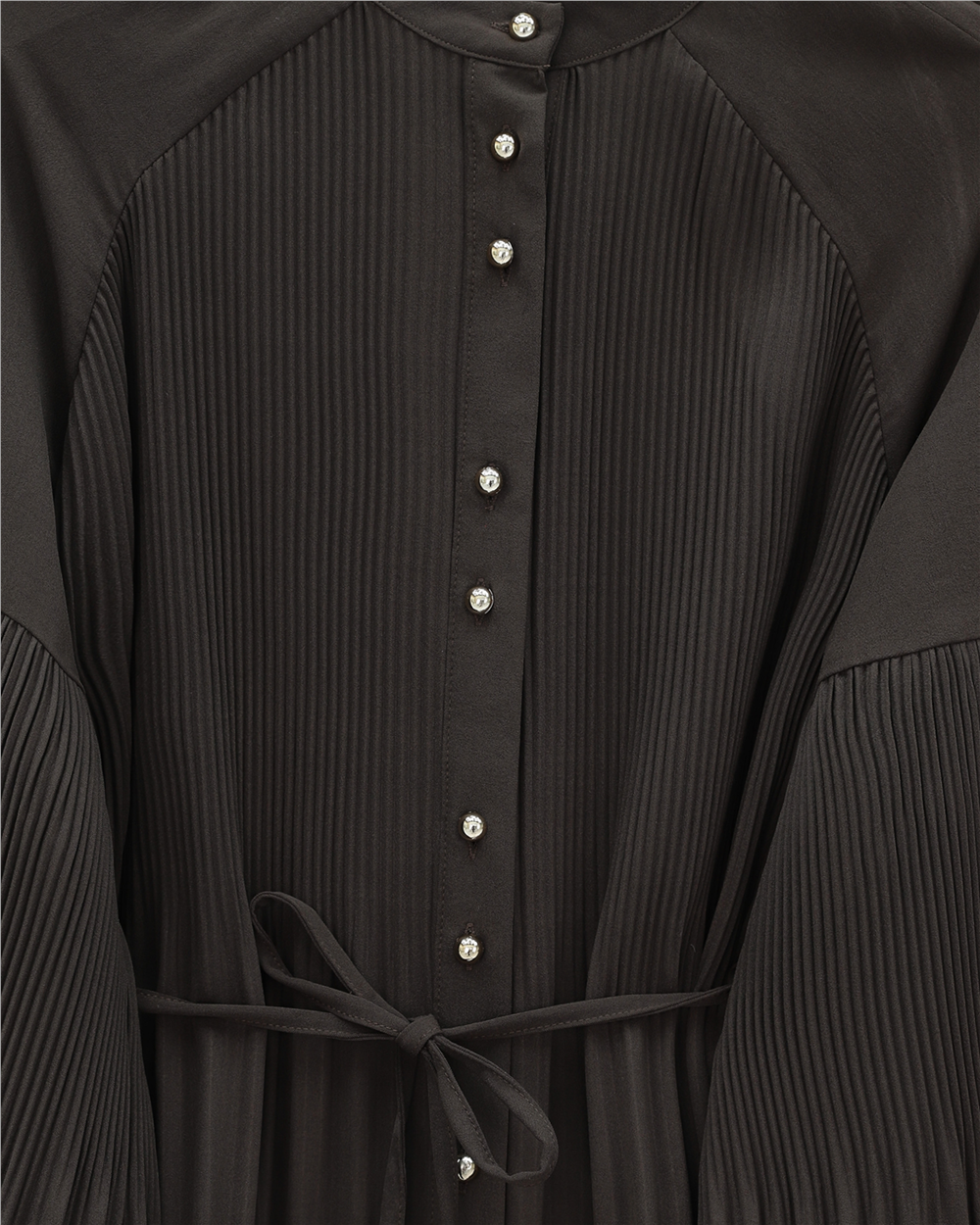 Piliseli Hakim Yaka Düğmeli Krep Takım -K. Kahve (431-263130-R54)