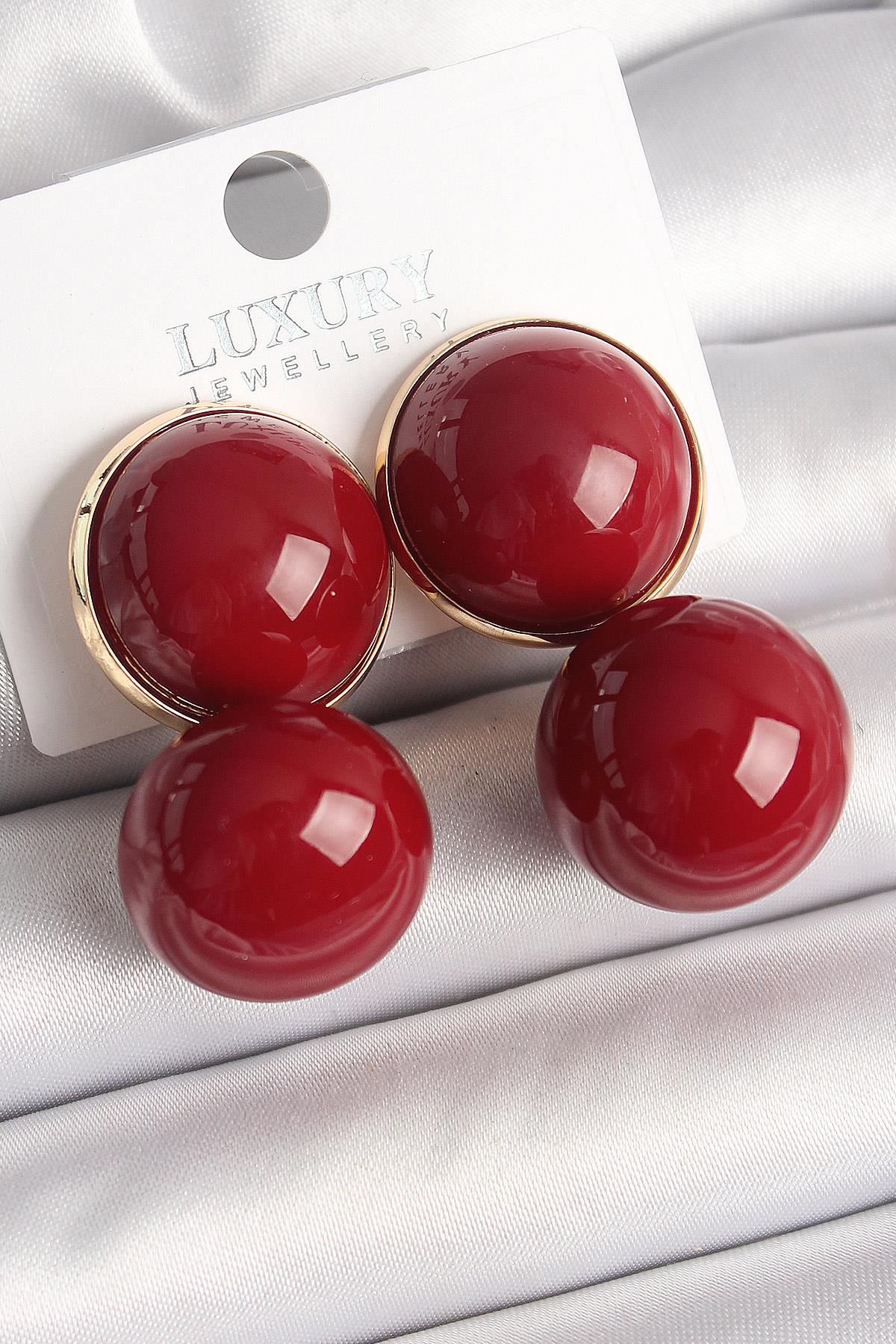 Pirinç Gold Renk Kırmızı Boncuk Model Kadın Küpe (BKP10361)