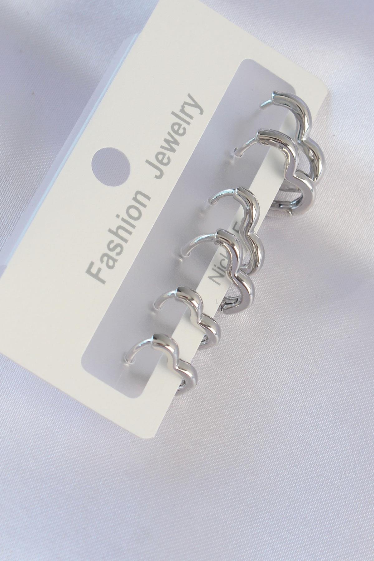 Pirinç Gümüş Renk Kalp Model Küpe Seti (BKP8993)