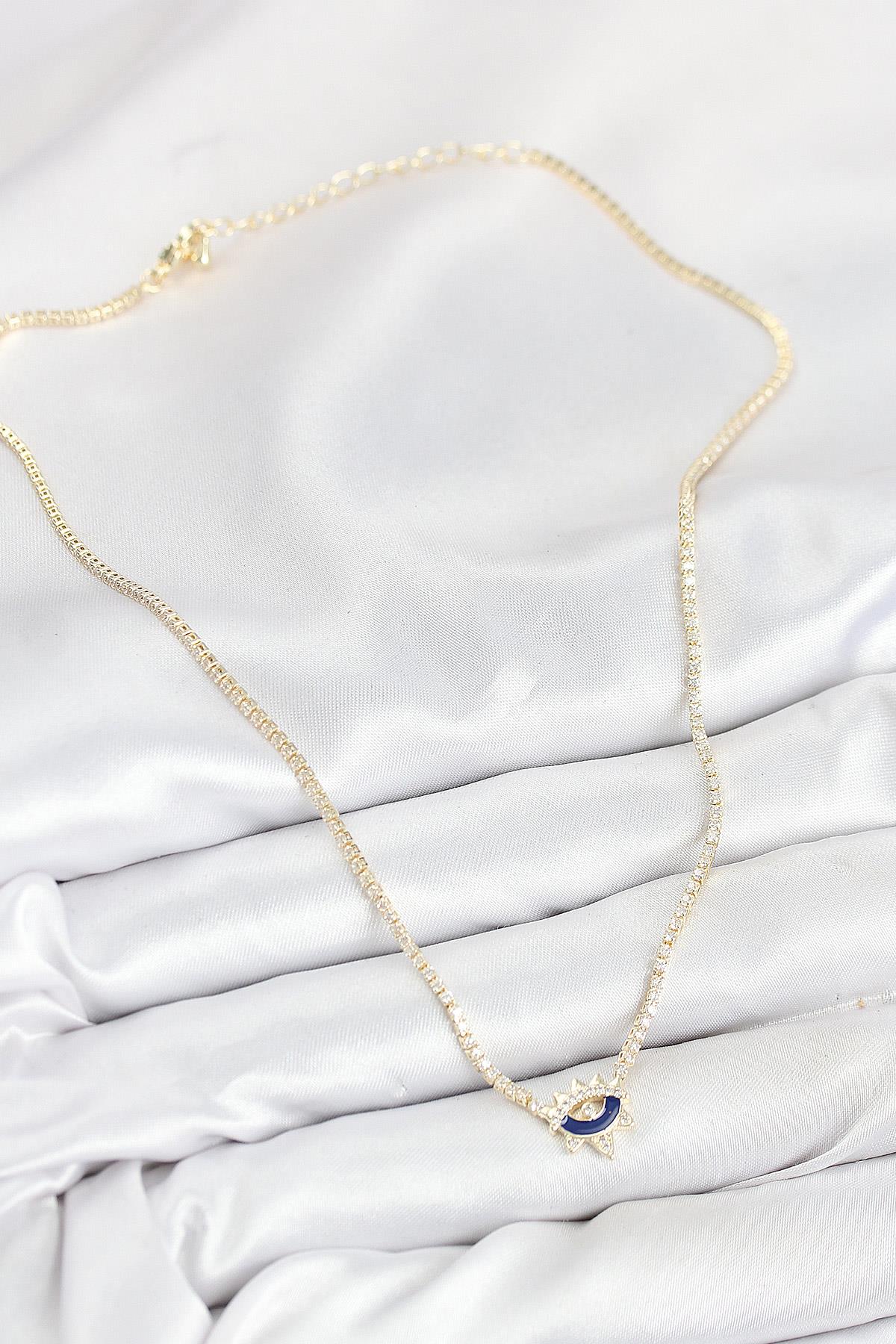 Pirinç Zirkon Taşlı Su Yolu Göz Model Gold Renk Kadın Kolye (BKO10547)