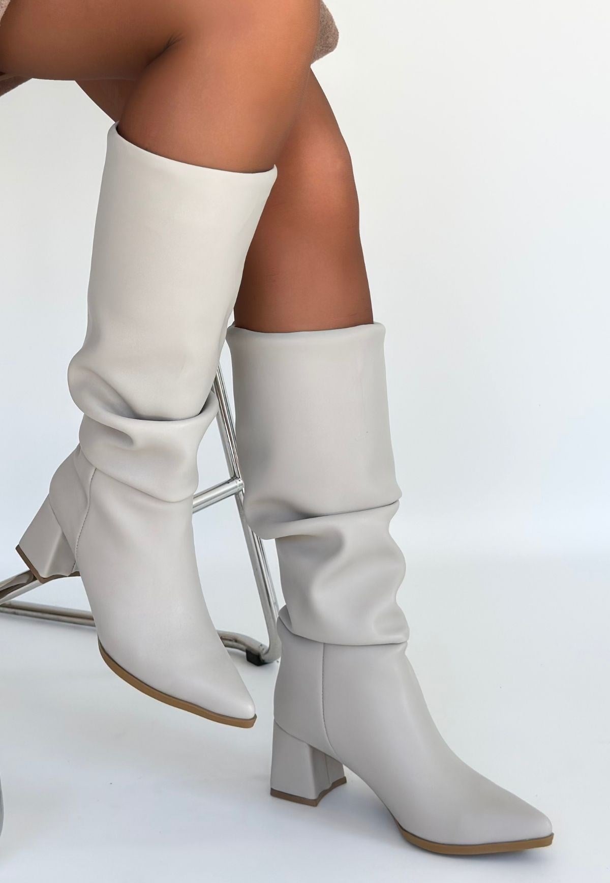 Pitay Cilt Topuklu Çizme -Bej modeli, kadın çizme kategorisinde, bej rengiyle kış kombinlerinize şıklık katarken rahat kalıbıyla günlük kullanımda konfor sağlar.