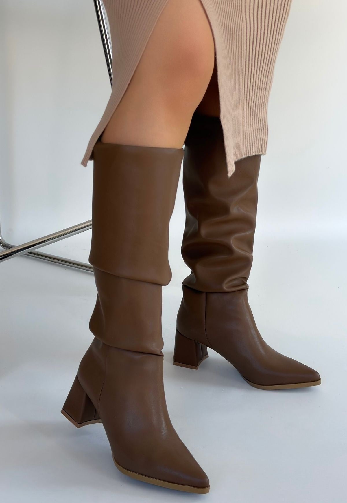 Detay: Topuklu Diz Altı Körüklü Çizme