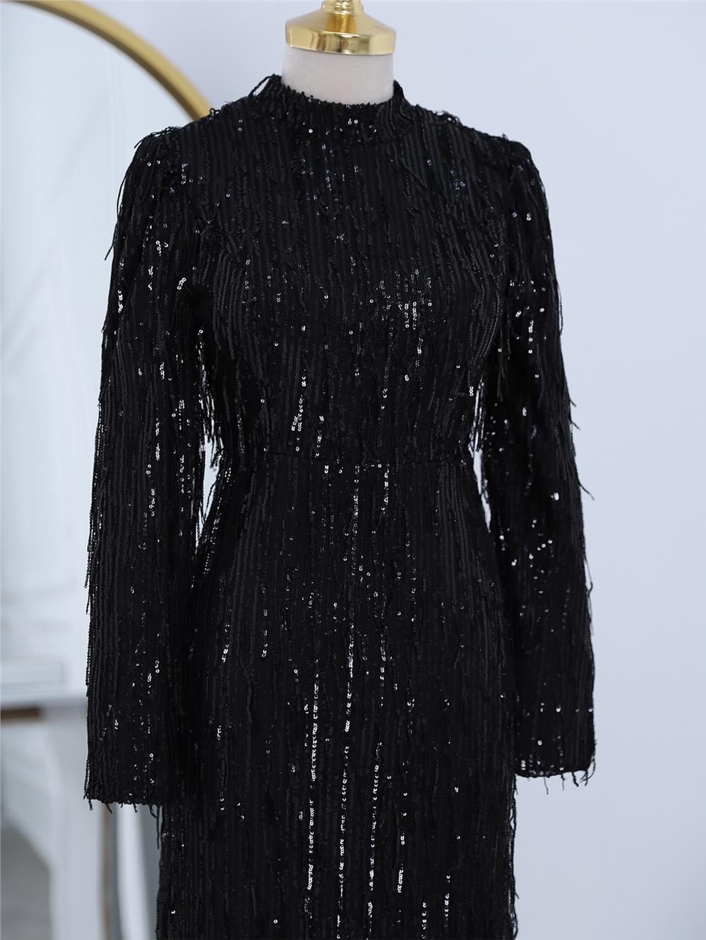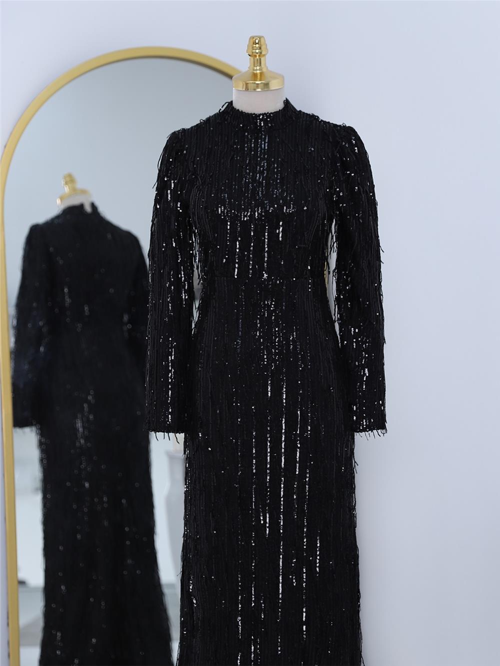 Hakim yaka, pul payetli, balenli, astarlı, arkadan fermuarlı tül abiye modelimiz yeni sezonun en rağbet gören parçalarındandır.