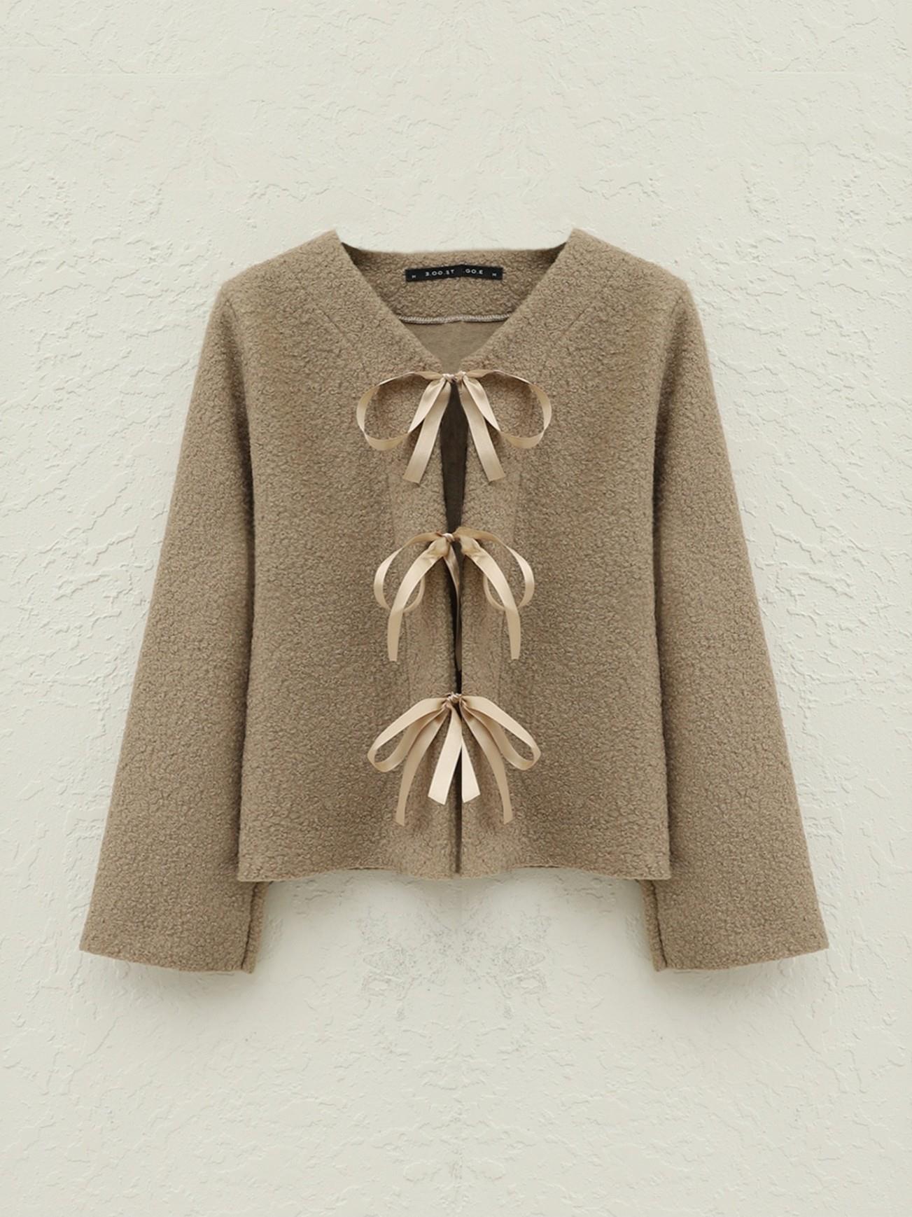 Saten Bağcıklı Buklet Ceket -Vizon (349-6051-R23)