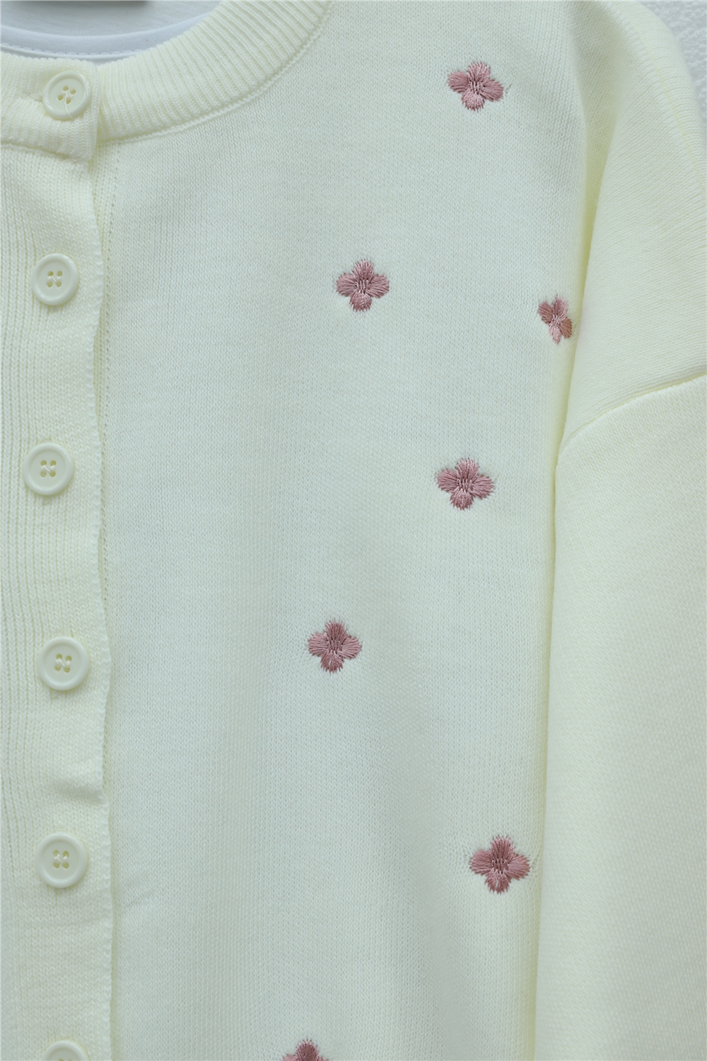Serpme Çiçek Nakışlı Düğmeli Oversize Triko Hırka -Ekru (109-9794-R07)
