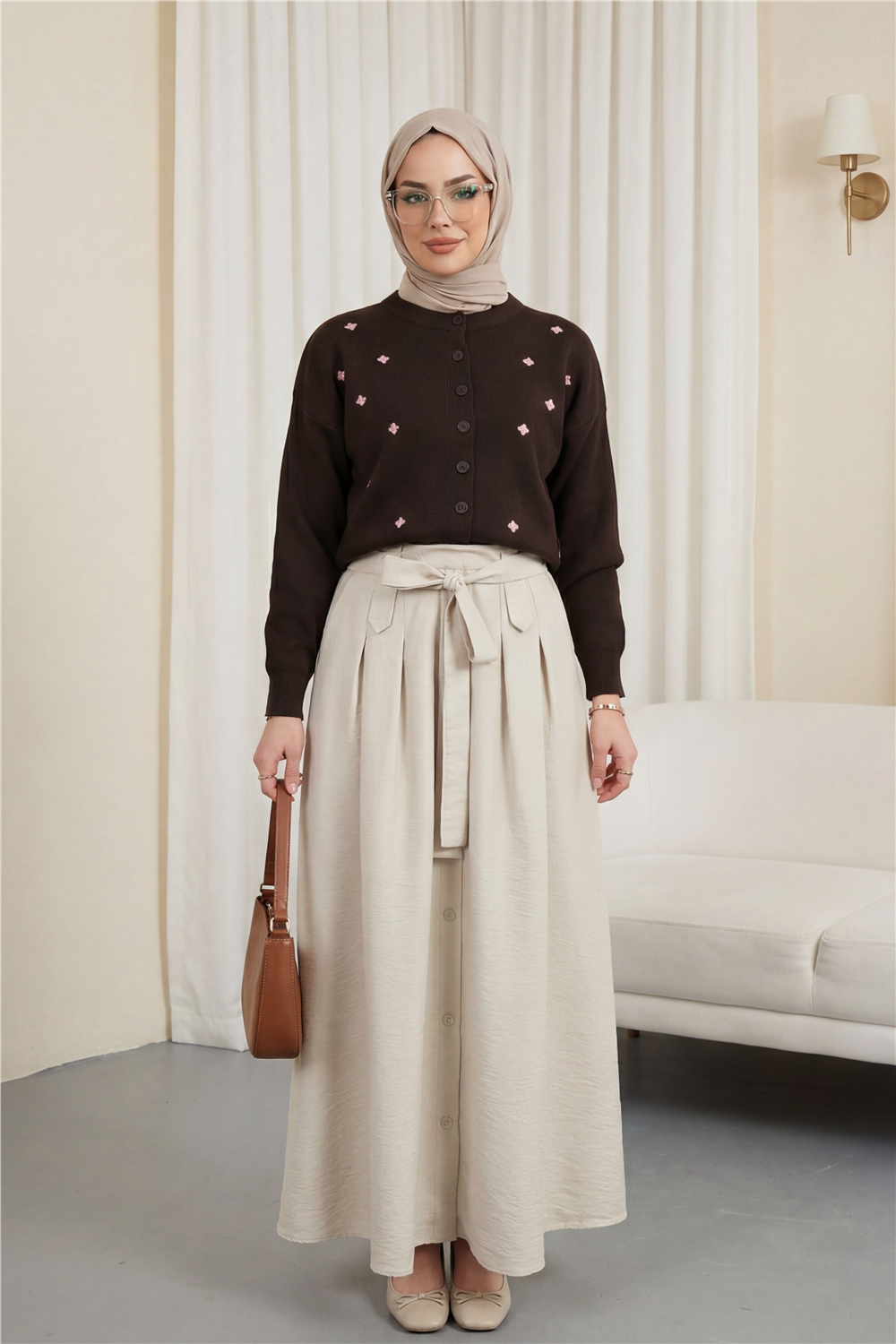 Serpme Çiçek Nakışlı Düğmeli Oversize Triko Hırka, rahat ve romantik bir stil sunar. Serpme çiçek nakışları tasarıma zarif bir dokunuş katarken, oversize kesimi modern ve konforlu bir görünüm sağlar. Düğmeli formu klasik bir duruş sunar. Yumuşak triko dokusu sayesinde günlük kombinlerde kolayca tercih edilir.