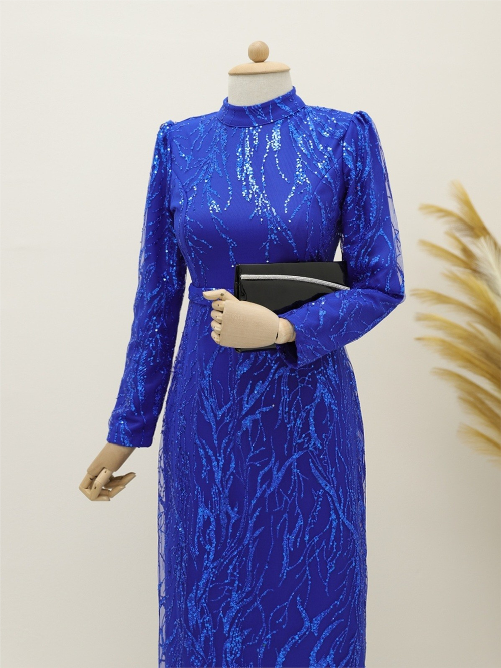 Hakim yaka, simli, arkadan fermuarlı, astarlı elbise modelimiz yeni sezonun en çok sevilen modelleri arasında yer almaktadır.