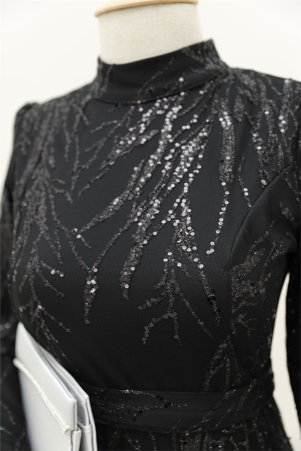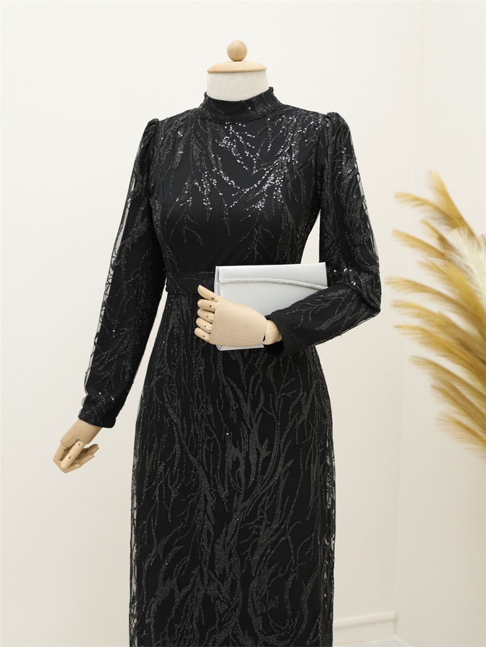 Hakim yaka, simli, arkadan fermuarlı, astarlı elbise modelimiz yeni sezonun en çok sevilen modelleri arasında yer almaktadır.