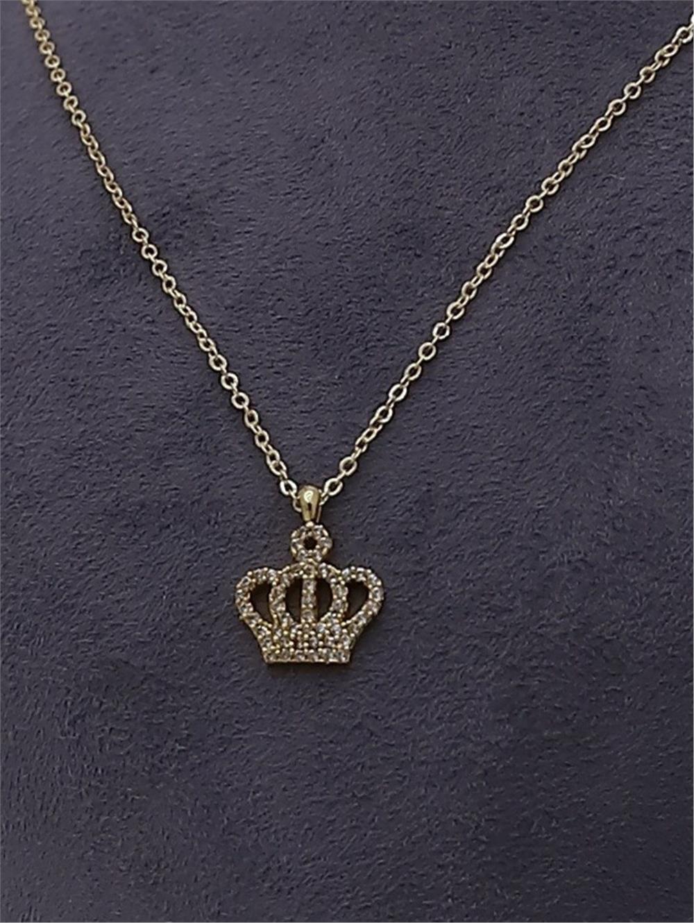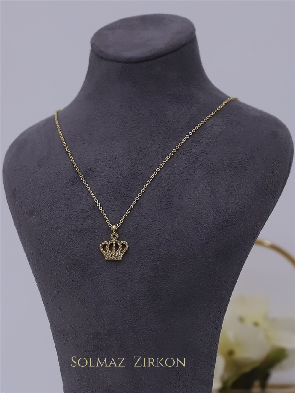 Altın Rengi Taç Motifli Solmaz Zirkon Kolye