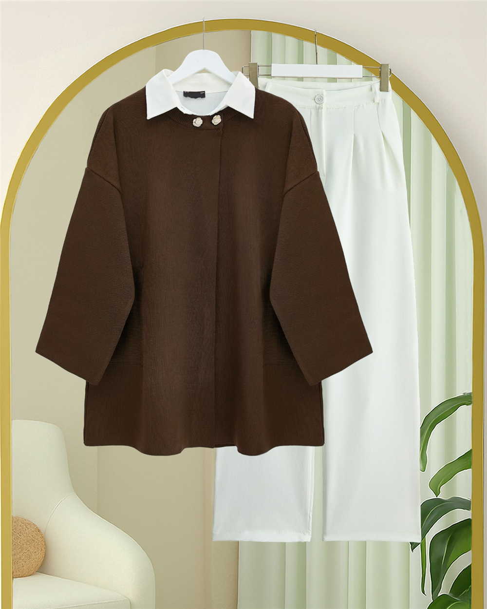 Tek Düğmeli Cepli Triko Panço -Kahve (109-9753-R15)