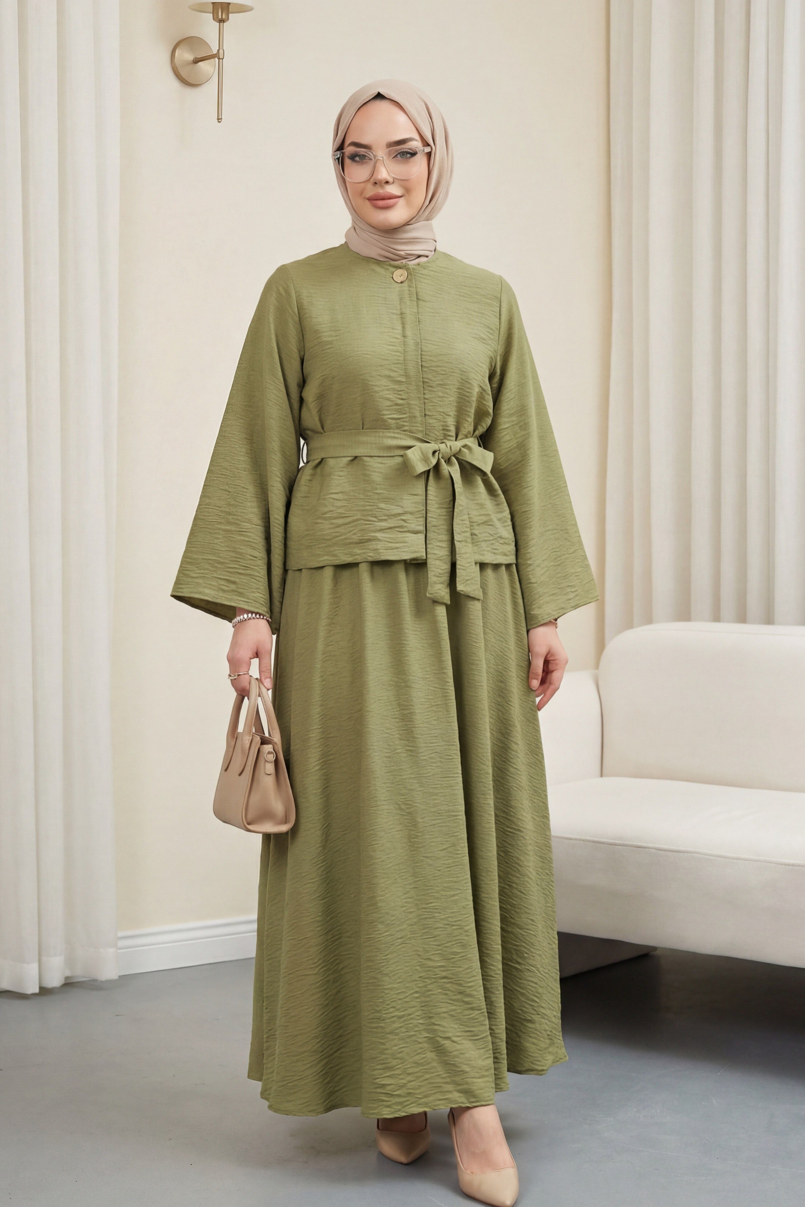 Tek Düğmeli Kemerli Etekli Cupra Takım -Çağla Y. (442-10080-R70)