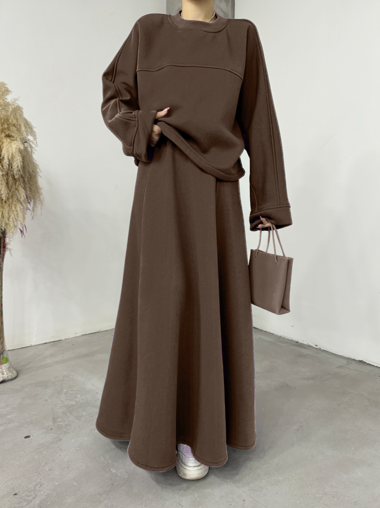 Üç İplik Şardonlu Etekli Takım -Kahve (102-3118-R15)