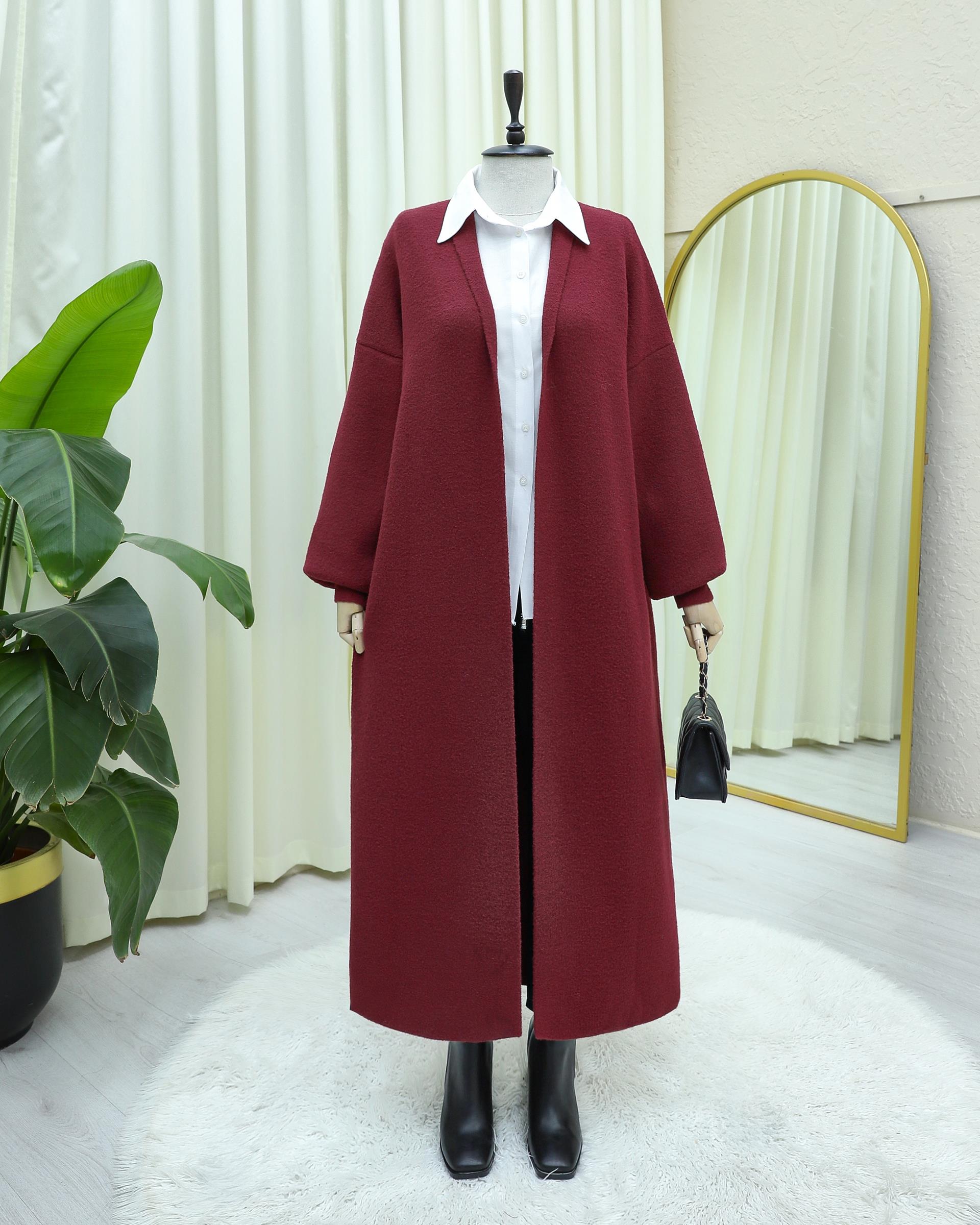 Yakalı Uzun Salaş Yumoş Hırka -Bordo (385-3814-R04)