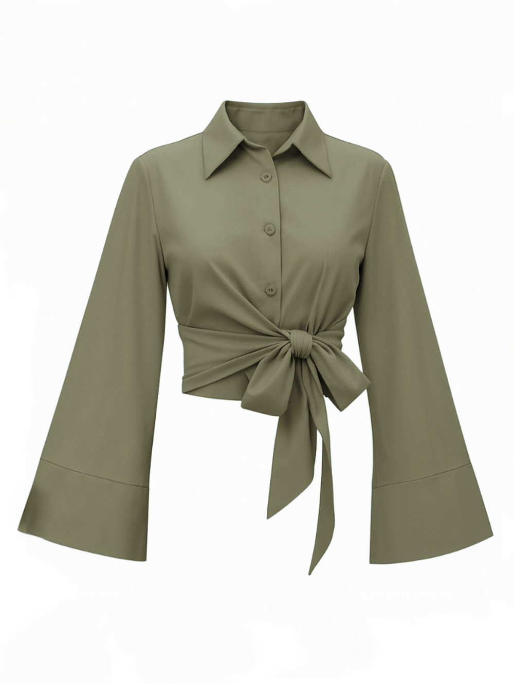 Yan Bağlamalı İspanyol Kol Düğmeli Gömlek, şık ve rahat bir seçenek sunar. İspanyol kol detayları ve yan bağlama tasarımı, zarif bir siluet yaratırken, düğmeli yapısı klasik bir şıklık katar. Hem günlük hem de özel kombinlerde rahatça kullanılabilir.