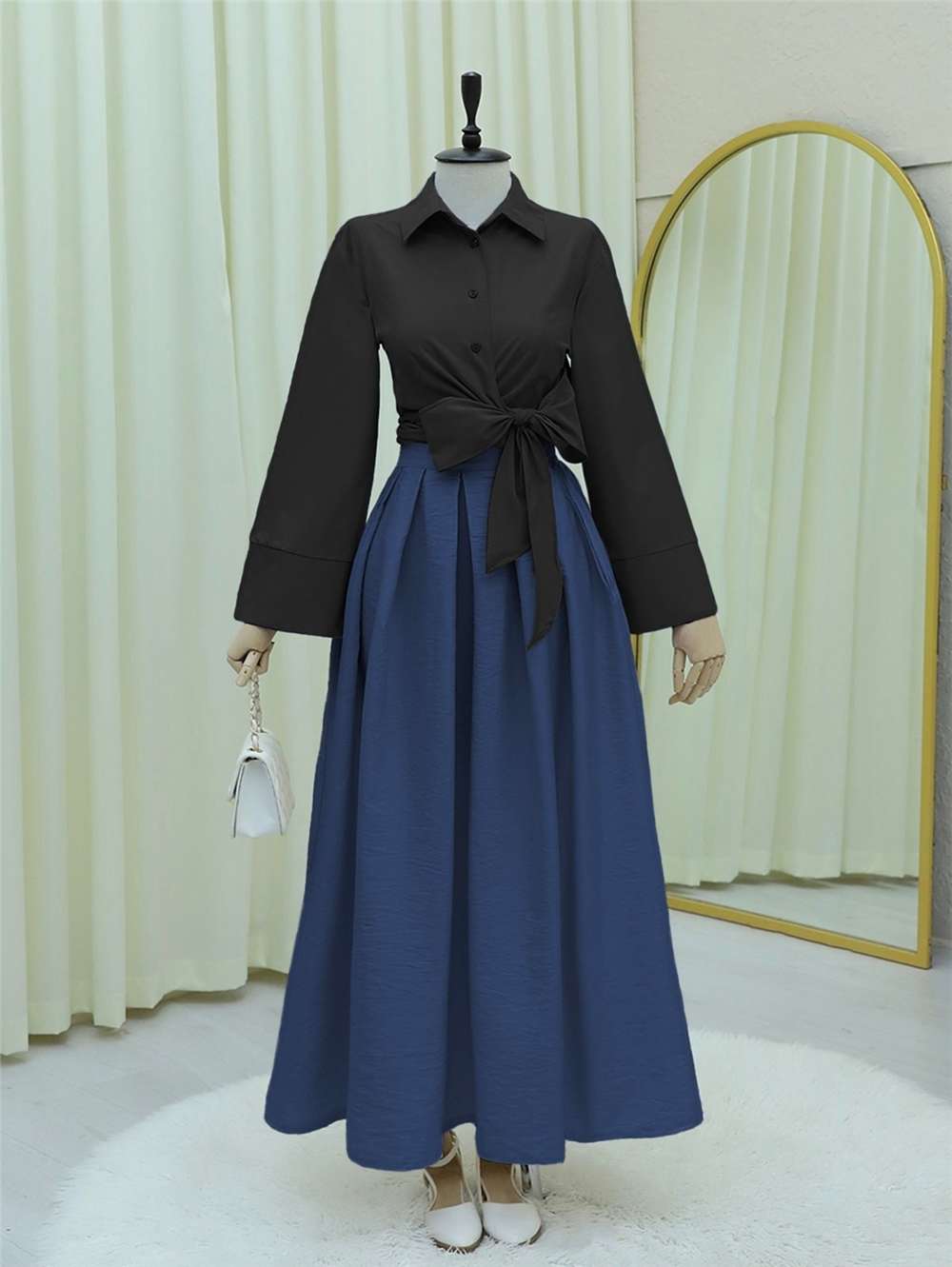 Yan Bağlamalı İspanyol Kol Düğmeli Gömlek, şık ve rahat bir seçenek sunar. İspanyol kol detayları ve yan bağlama tasarımı, zarif bir siluet yaratırken, düğmeli yapısı klasik bir şıklık katar. Hem günlük hem de özel kombinlerde rahatça kullanılabilir.