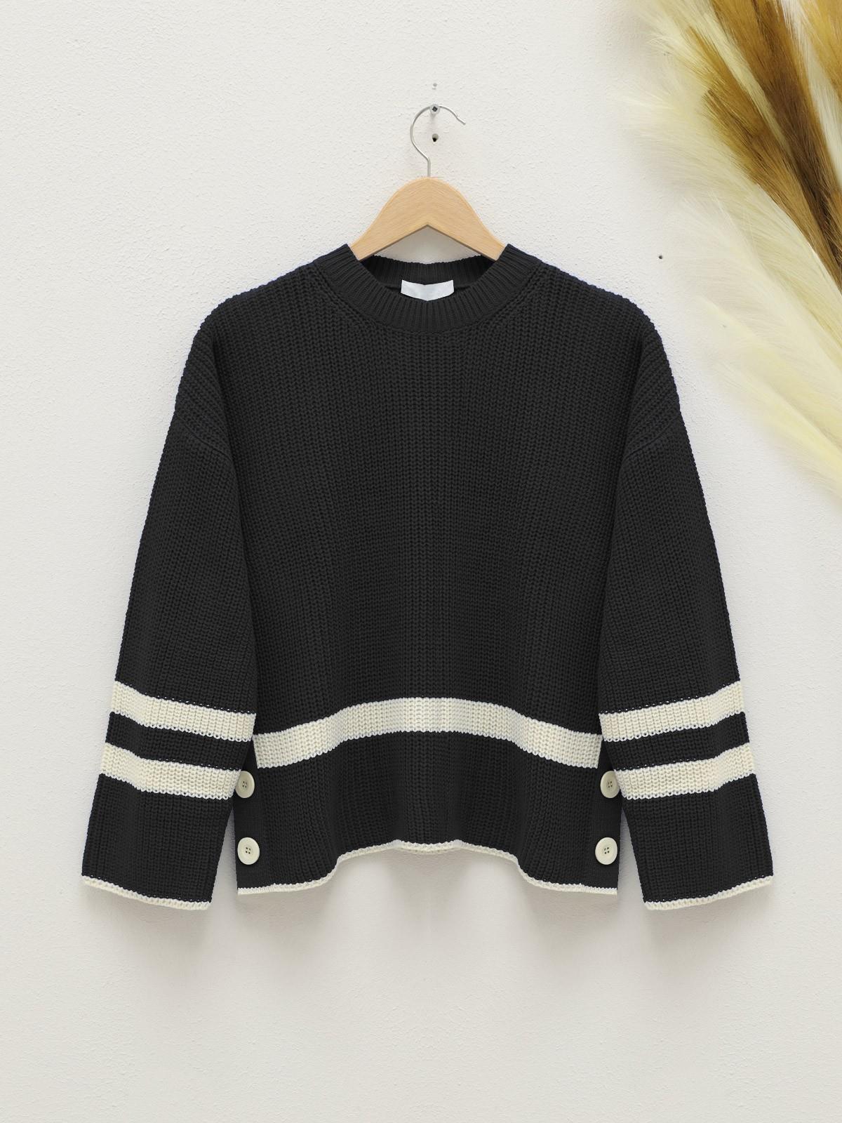 Bisiklet yaka, çizgili, yanları düğme detaylı kazak modelimiz yeni sezonun en çok sevilen modelleri arasında yer almaktadır.