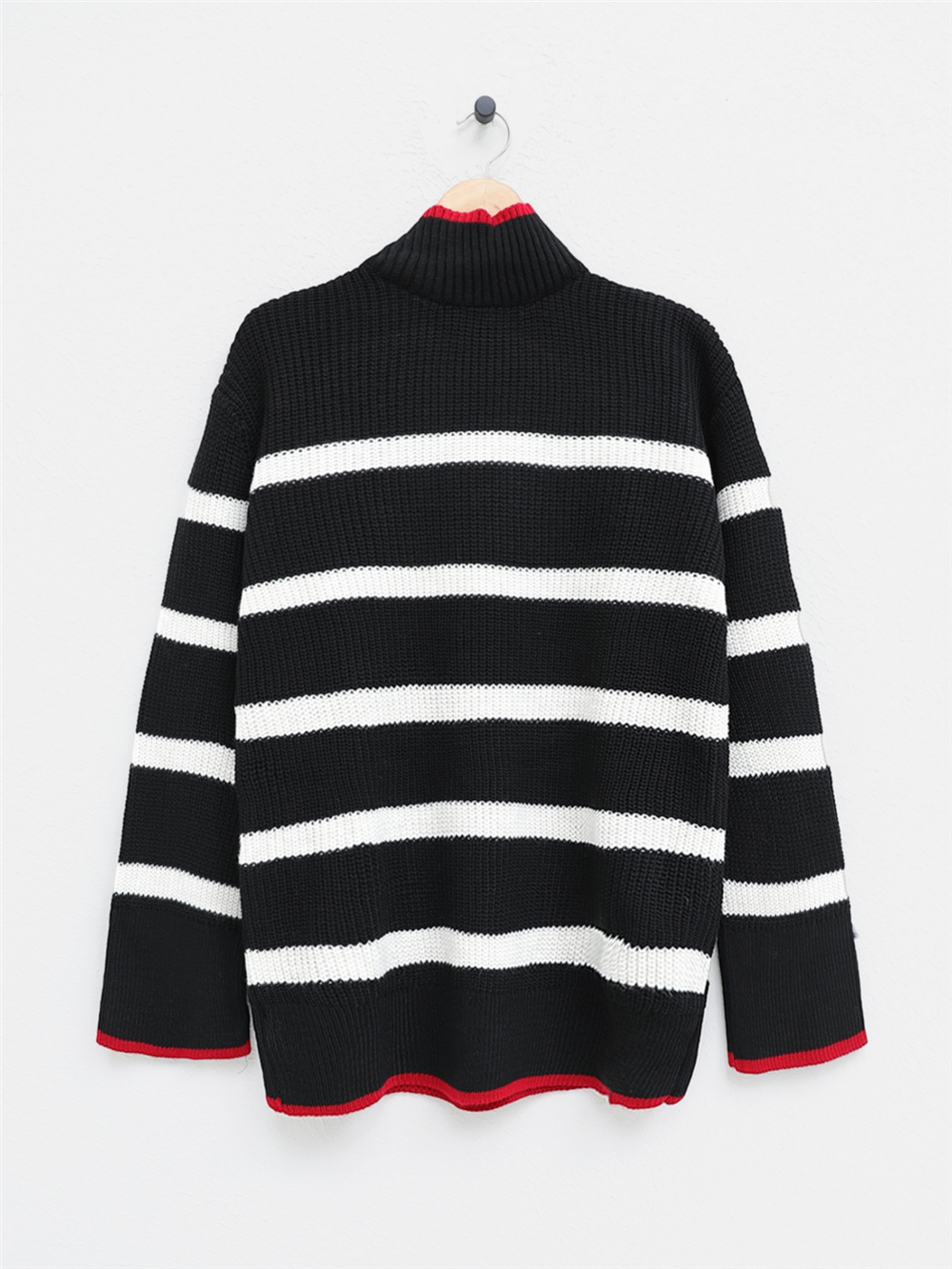 Yarım Boğazlı Örgü Desen Triko Tunik -Siyah (357-5144-R01)
