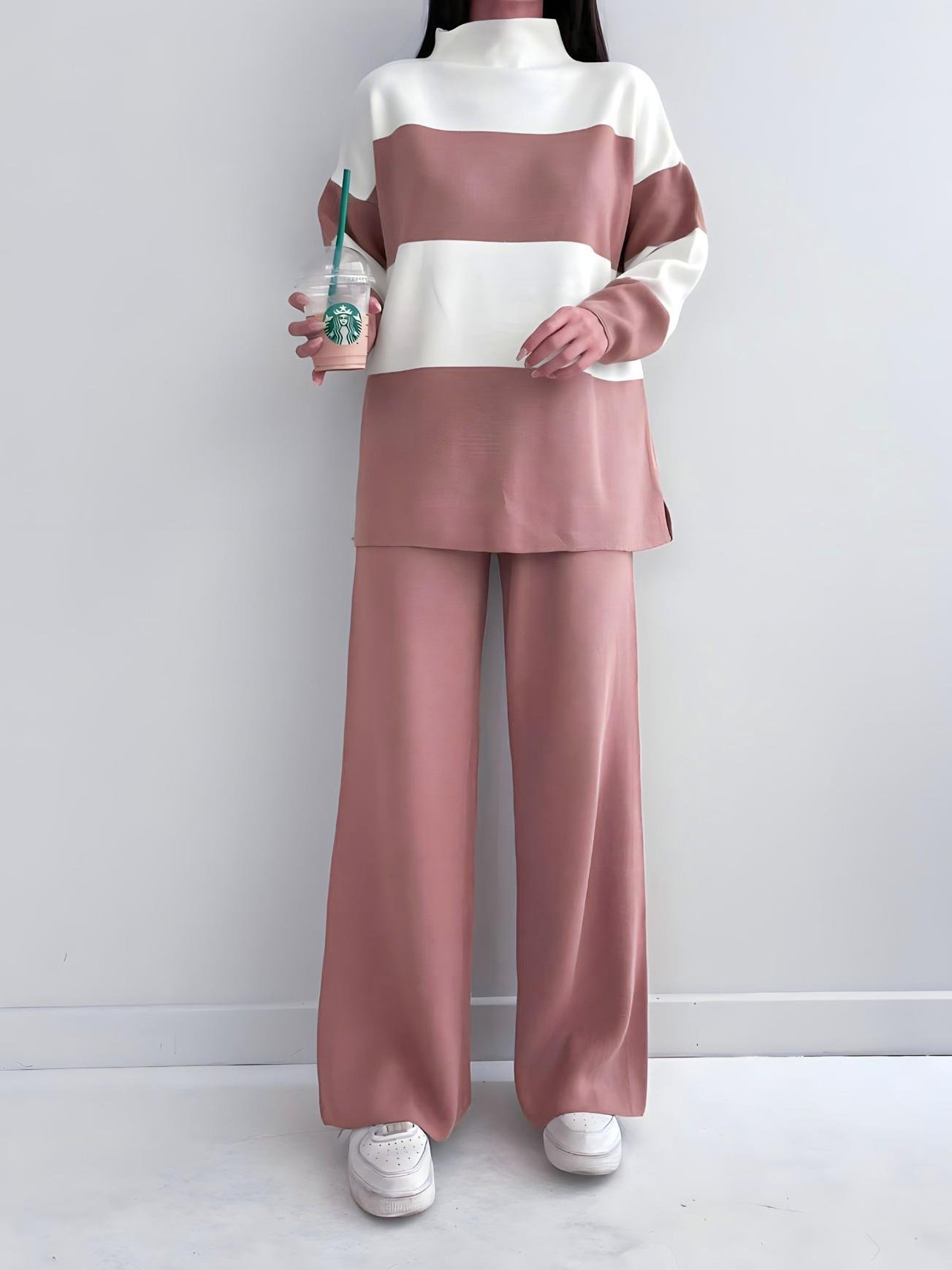 Yarım Boğazlı Çizgili Triko Takım – Şıklık ve Konfor Bir Arada