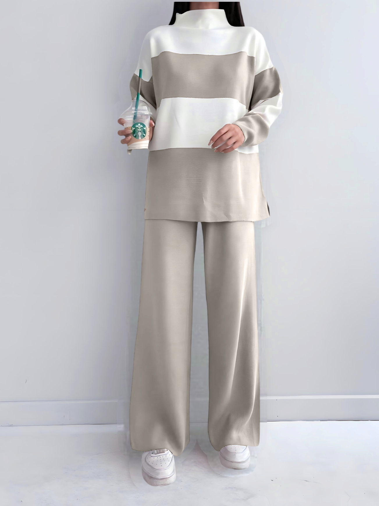 Yarım Boğazlı Çizgili Triko Takım – Şıklık ve Konfor Bir Arada