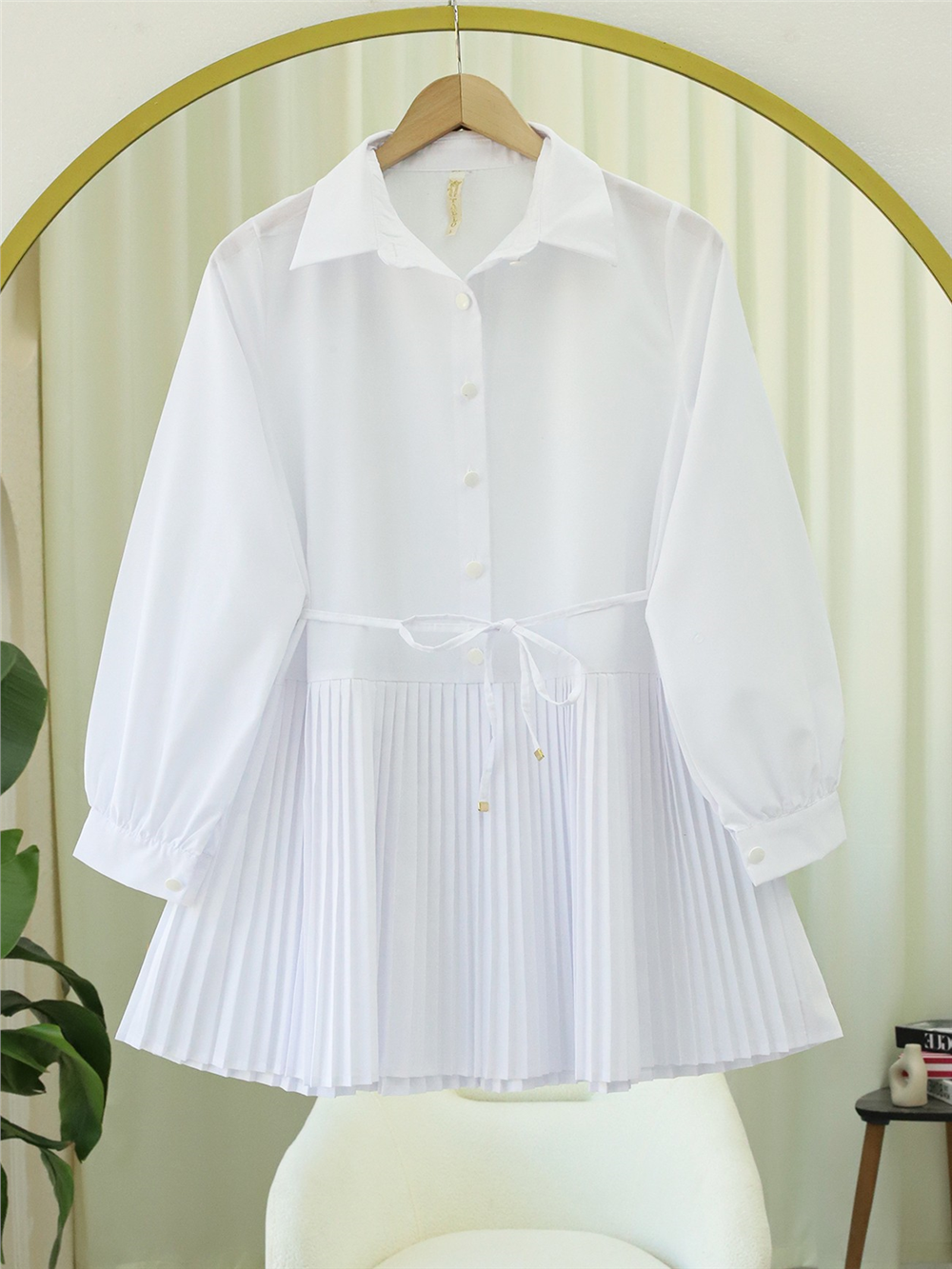 Bu yazlık gömlek, modern ve akışkan siluetiyle dikkat çekiyor. Vücuda uyum sağlayan beli bağlama detayı sayesinde istediğiniz gibi şekillendirebilirsiniz. Gömleğe hareket katan piliseli tasarımı ve kolay giyim sağlayan **yarım düğme** detayıyla gün boyu konfor sunar. **%95 Polyester ve %5 Elastan** içeriği sayesinde esnek ve dökümlü bir yapıya sahiptir.