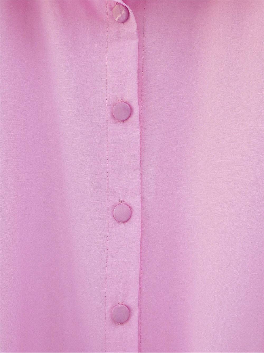 Yarım Düğmeli Beli Bağlamalı Piliseli Gömlek -Pudra (398-1034-R06)