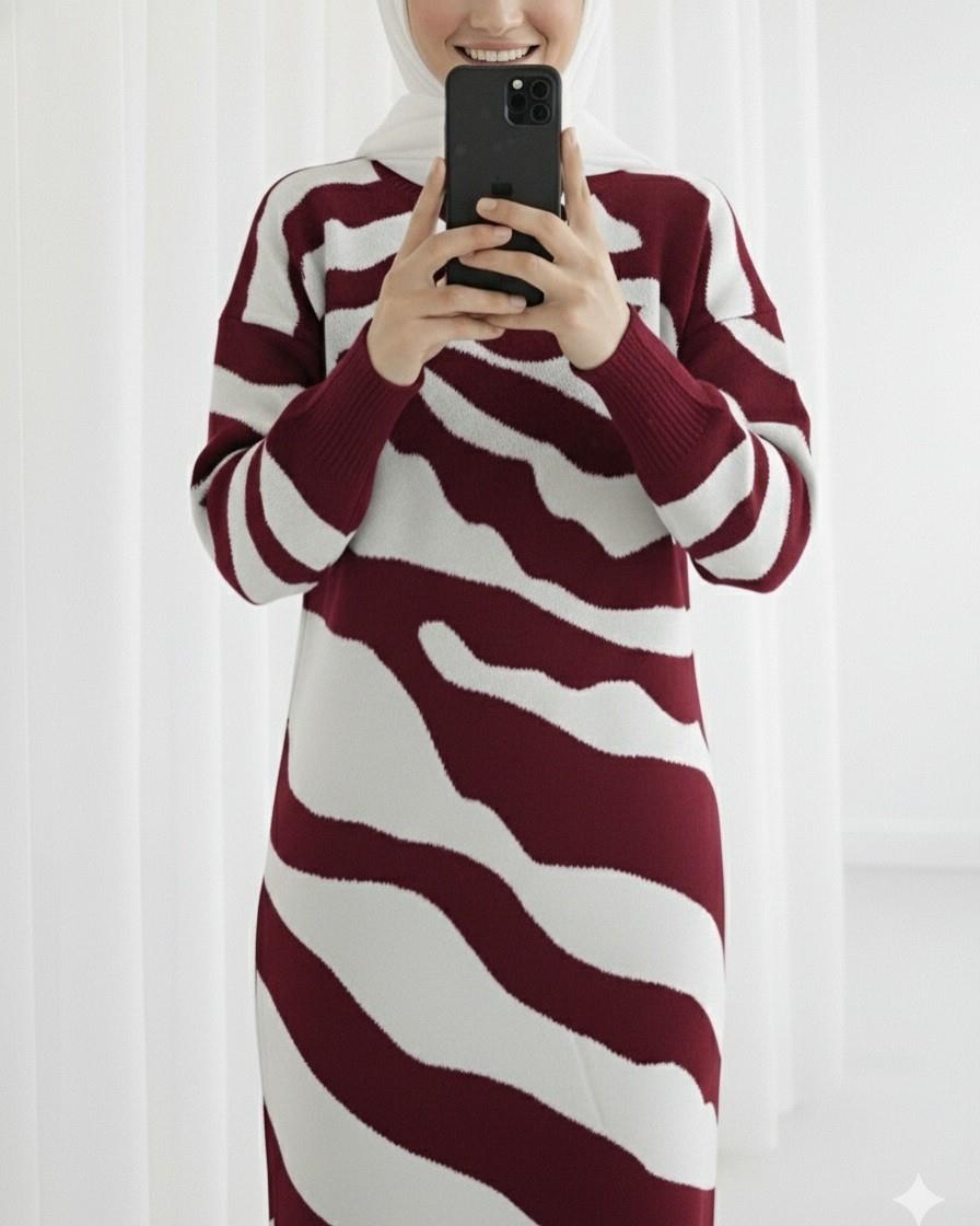 Yırtmaçlı desenli triko elbise, zarafeti ve modern çizgiyi bir araya getirerek kış gardırobunuzun gözdesi olacak. Şık desenleri, yumuşak triko dokusu ve feminen yırtmaç detayıyla hem günlük hem de özel günlerde rahatlıkla kullanılabilir.