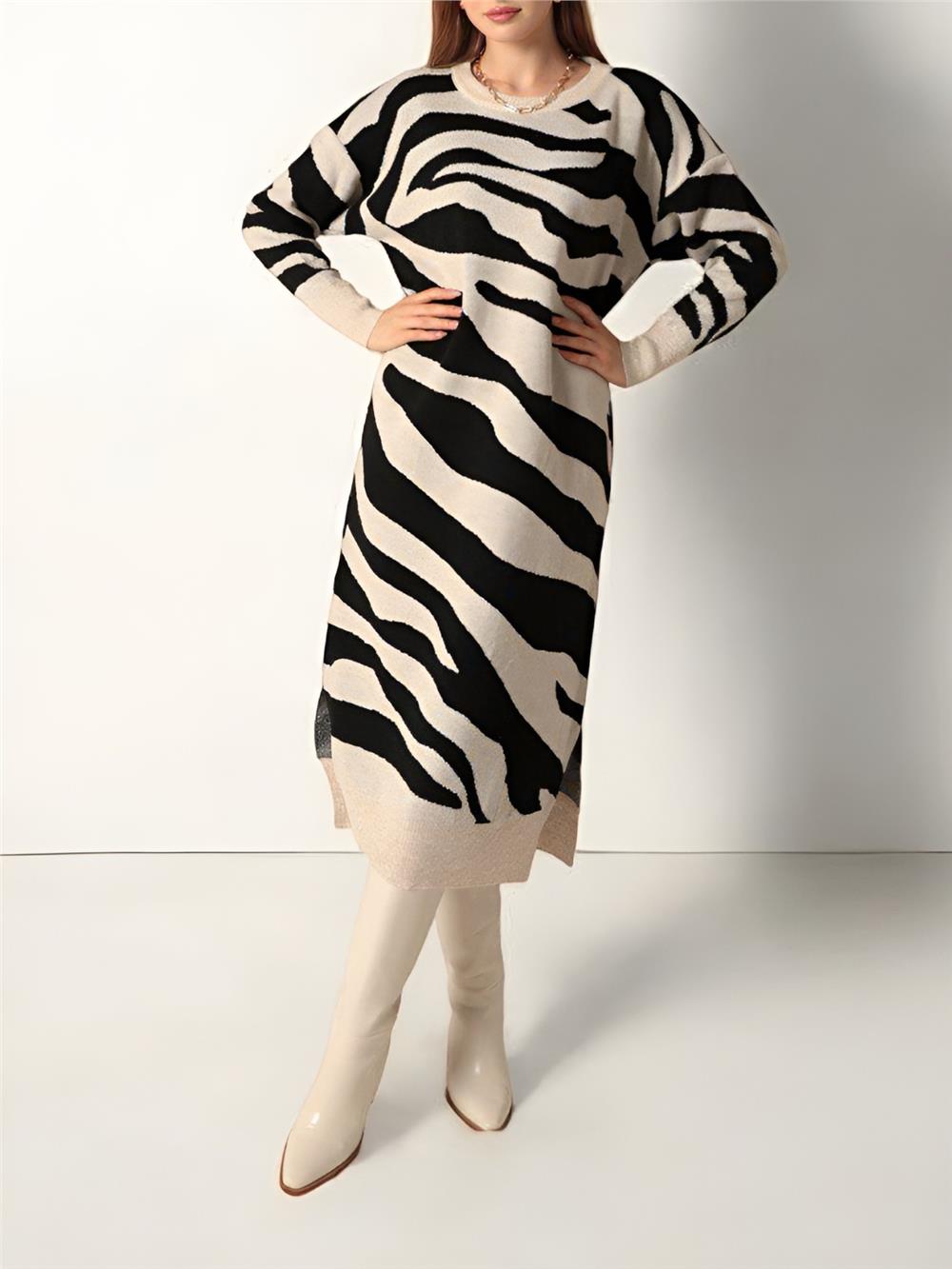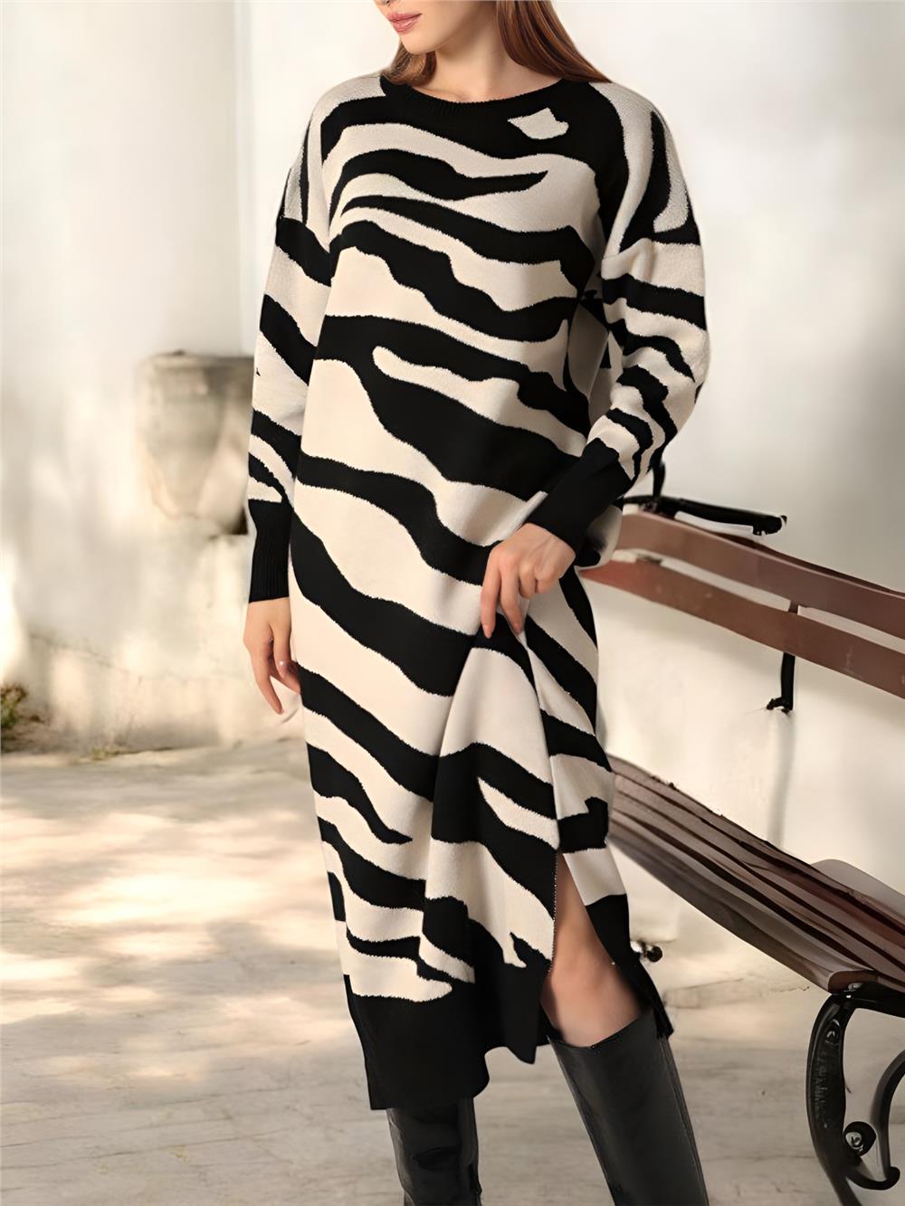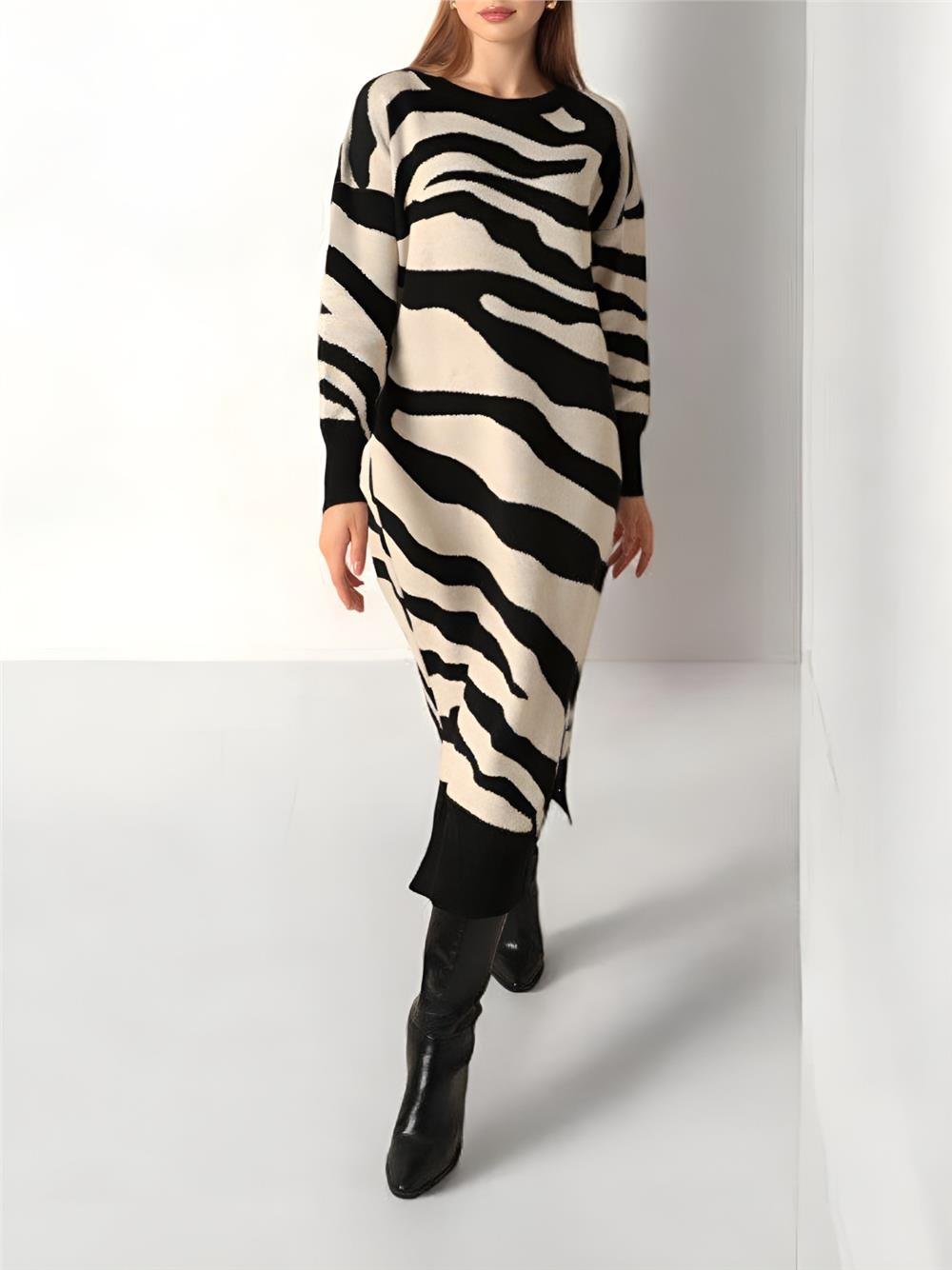 Yırtmaçlı desenli triko elbise, zarafeti ve modern çizgiyi bir araya getirerek kış gardırobunuzun gözdesi olacak. Şık desenleri, yumuşak triko dokusu ve feminen yırtmaç detayıyla hem günlük hem de özel günlerde rahatlıkla kullanılabilir.