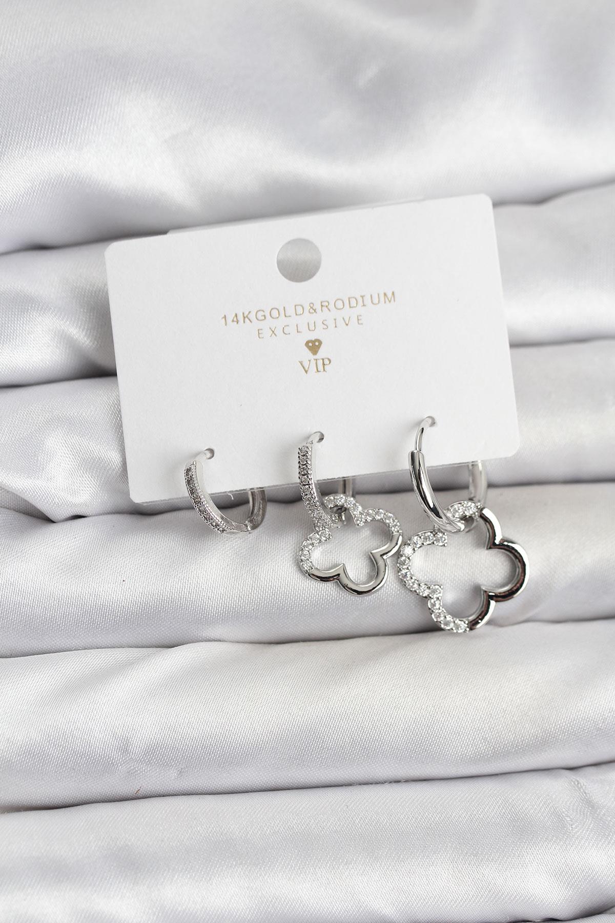 Yonca Model Gümüş Renk Pirinç 3'lü Kadın Küpe Seti (BKP11452)