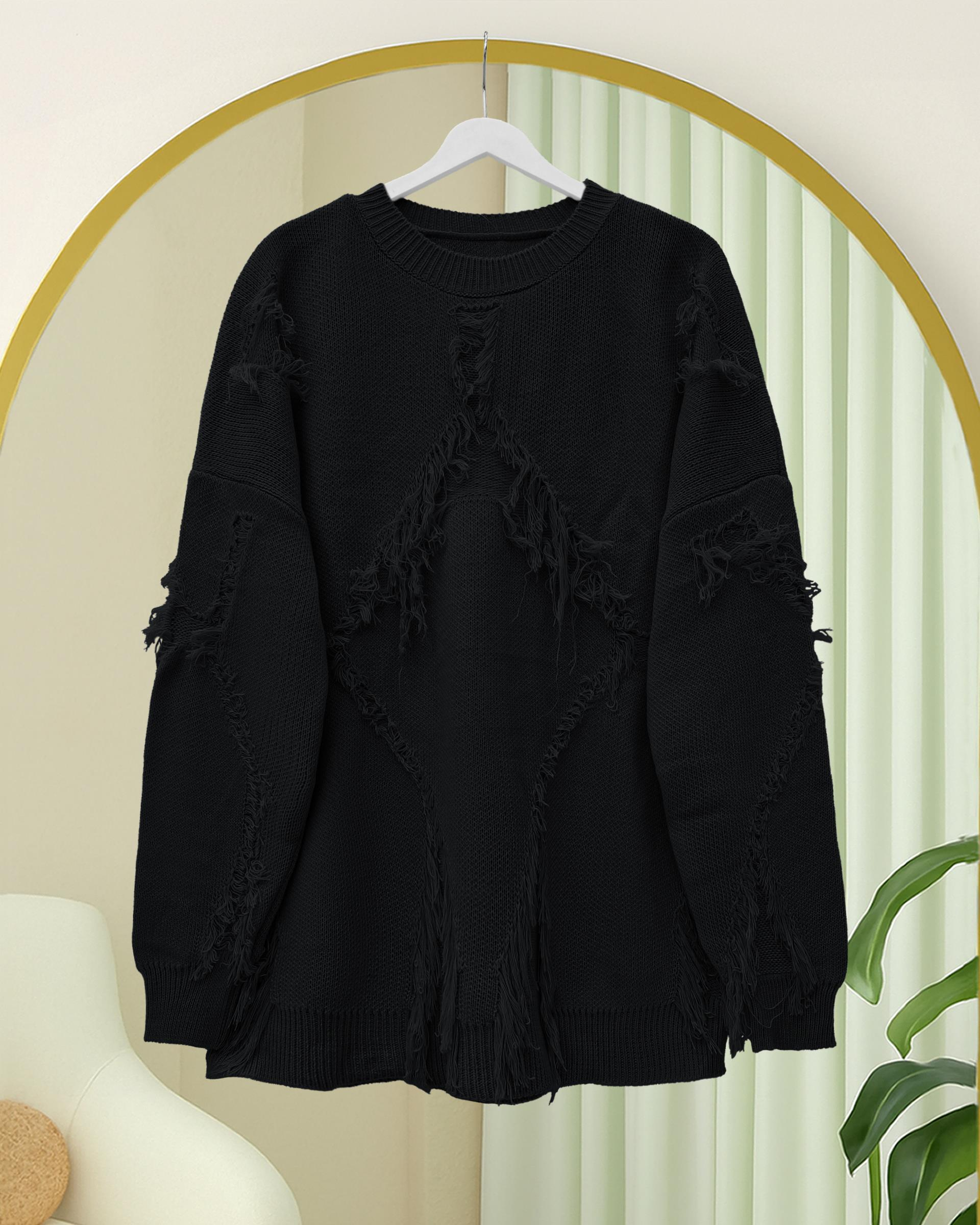 Yuvarlak Yaka Püskül Detaylı Triko Kazak -Siyah (385-3400-R01)