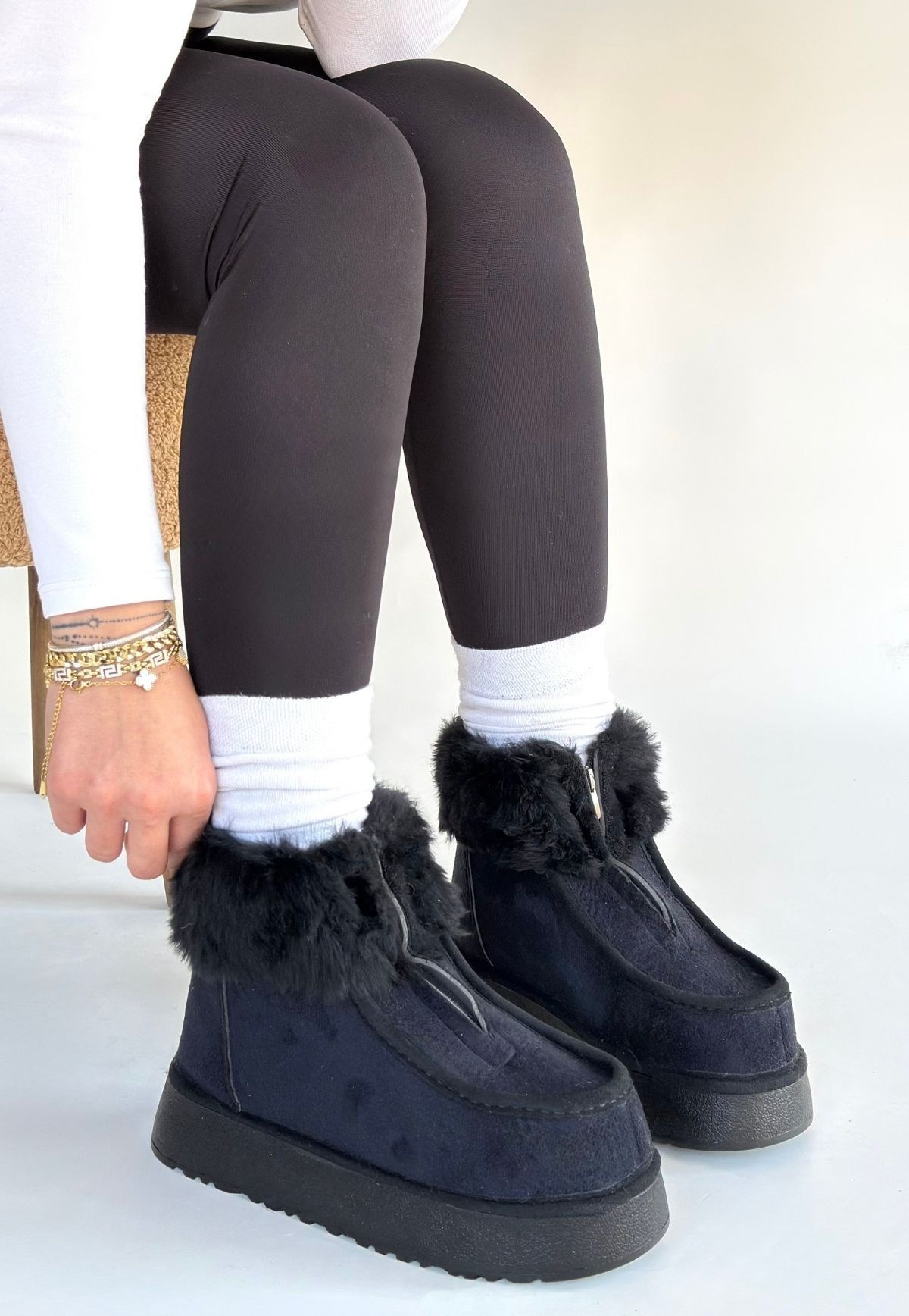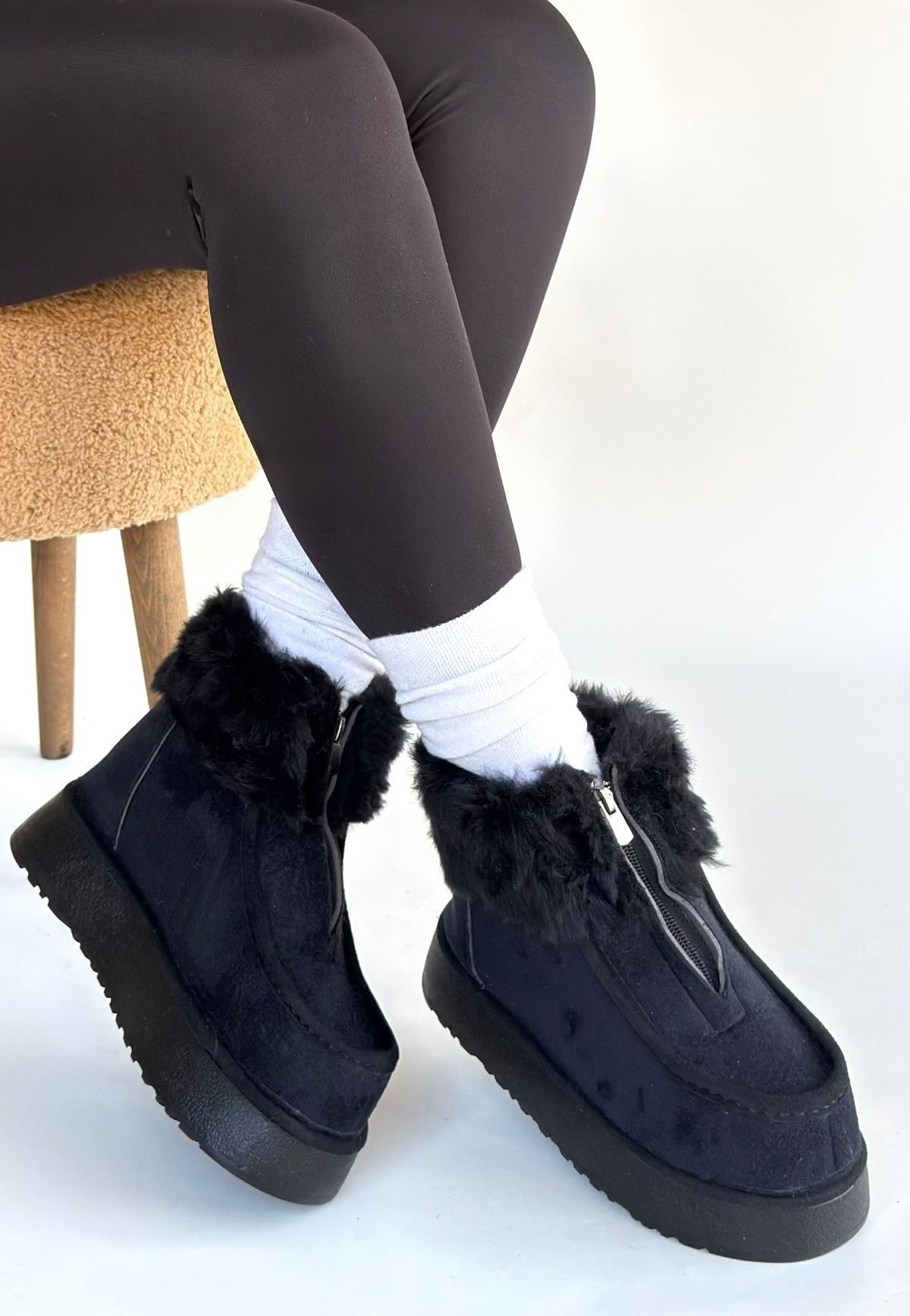 Zinya Süet Bot -Siyah modeli, kadın bot kategorisinde, siyah rengiyle soğuk havalarda hem şıklık hem de fonksiyonellik arayanlar için uygun bir seçenektir.