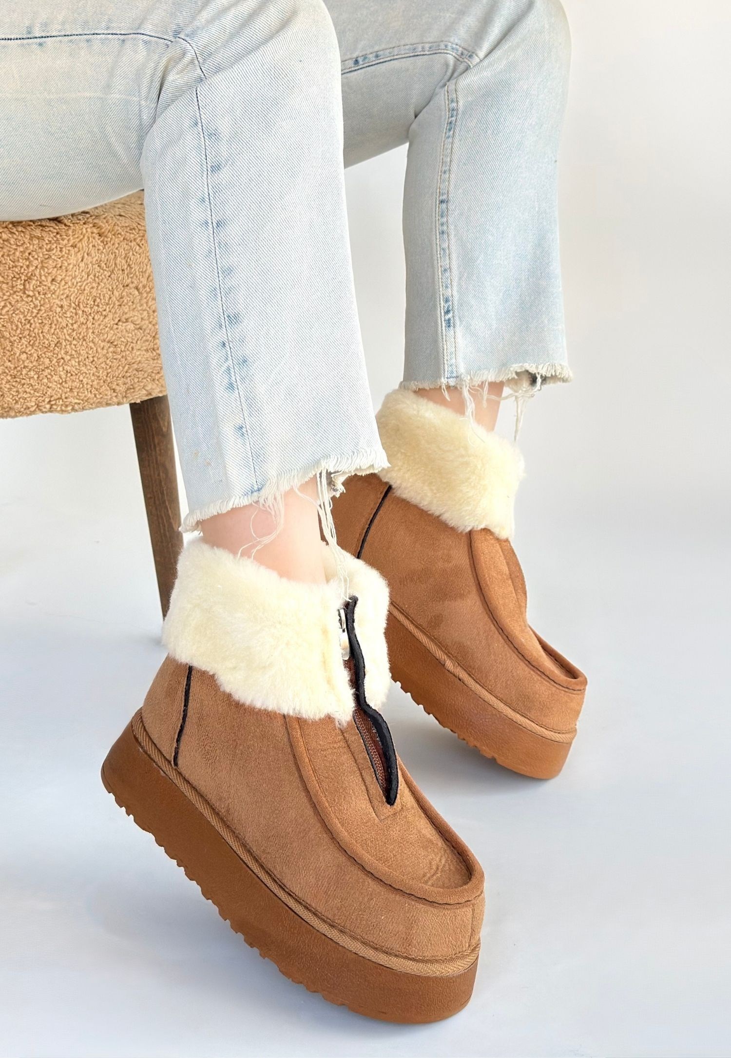 Zinya Süet Bot -Taba modeli, kadın bot kategorisinde, taba rengiyle soğuk havalarda hem şıklık hem de fonksiyonellik arayanlar için uygun bir seçenektir.
